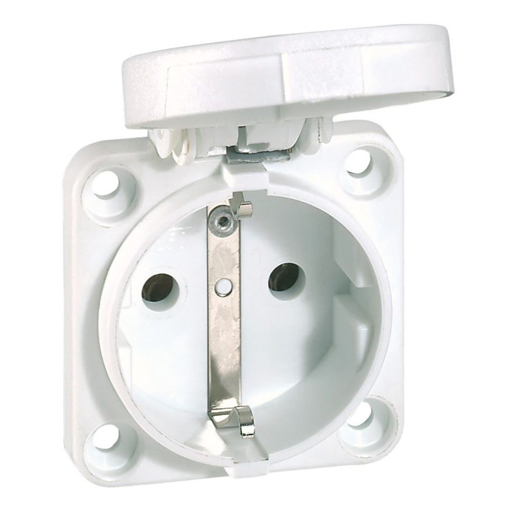 P17 Tempra háztartási aljzat, kék IP44 kisméretű felfogató peremmel Legrand 057675