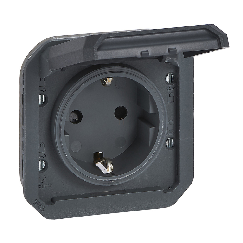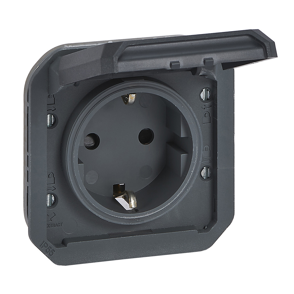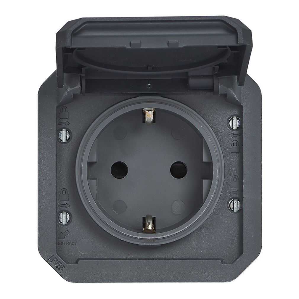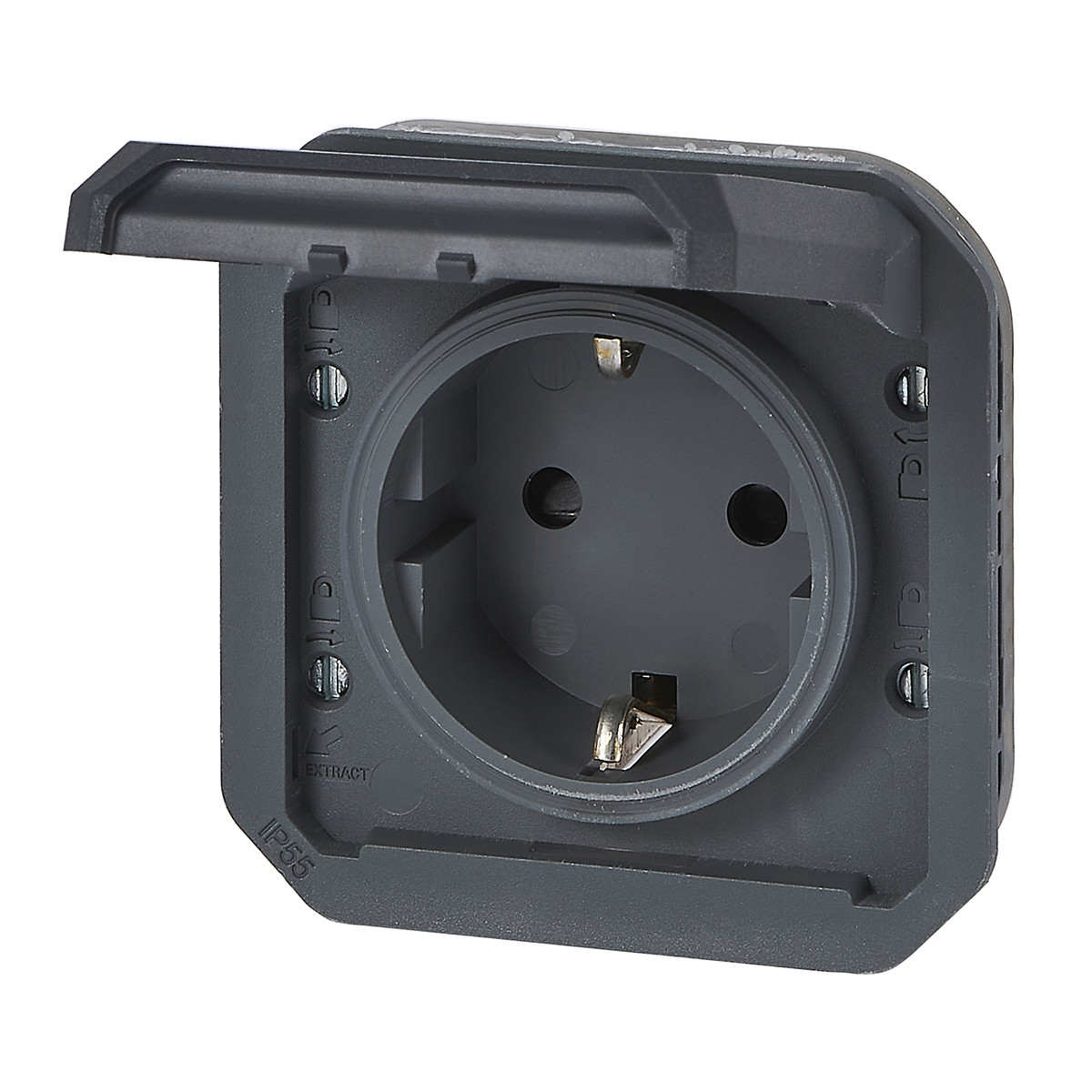 Legrand Plexo 55 2P+F csatlakozóaljzat csapófedéllel, csavaros vezetékbekötéssel, antracit - 069839L