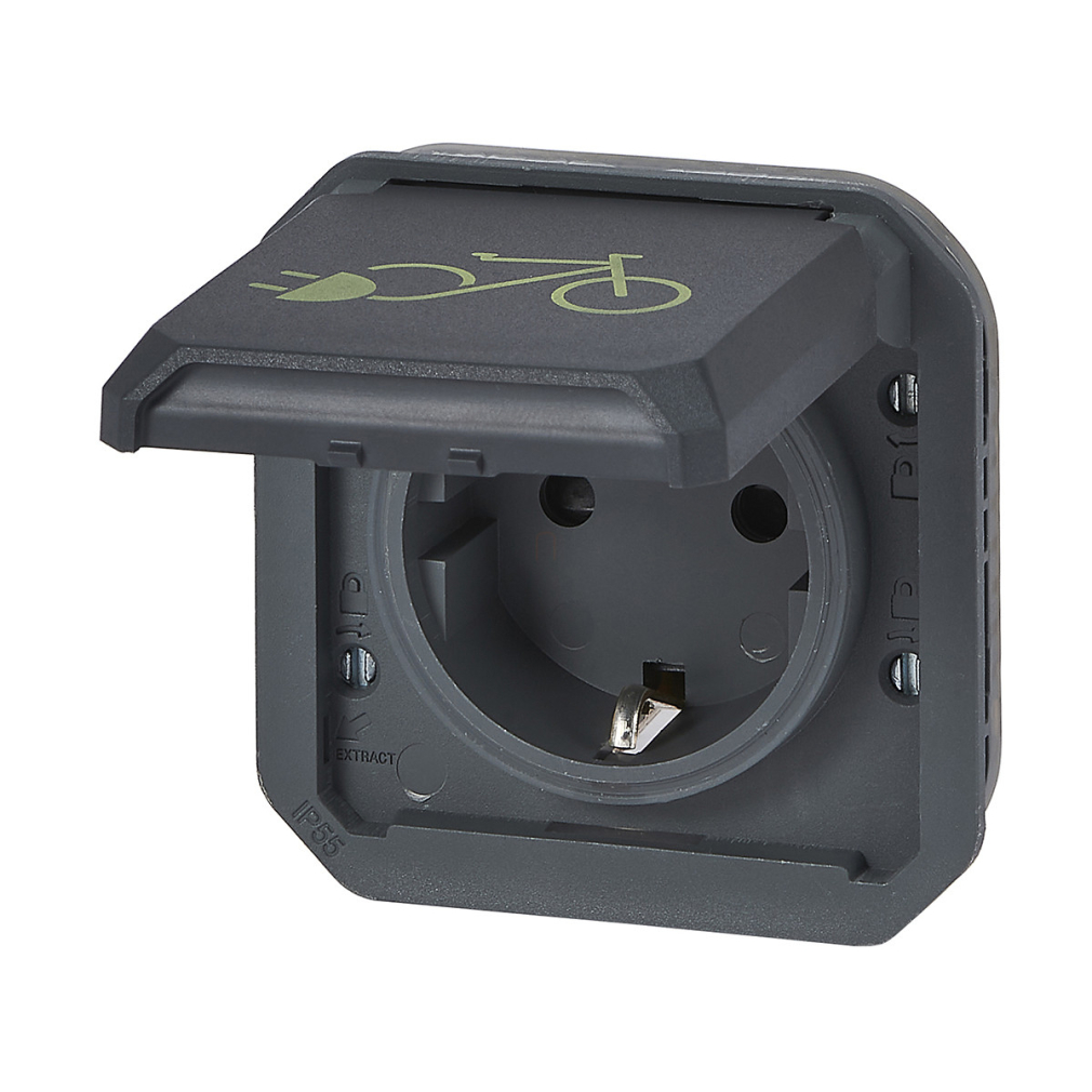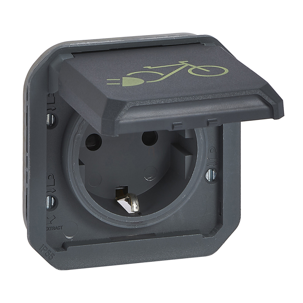 Legrand Plexo 55 2P+F csatlakozóaljzat elektromos kerékpárok töltéséhez 16A, antracit - 069886L