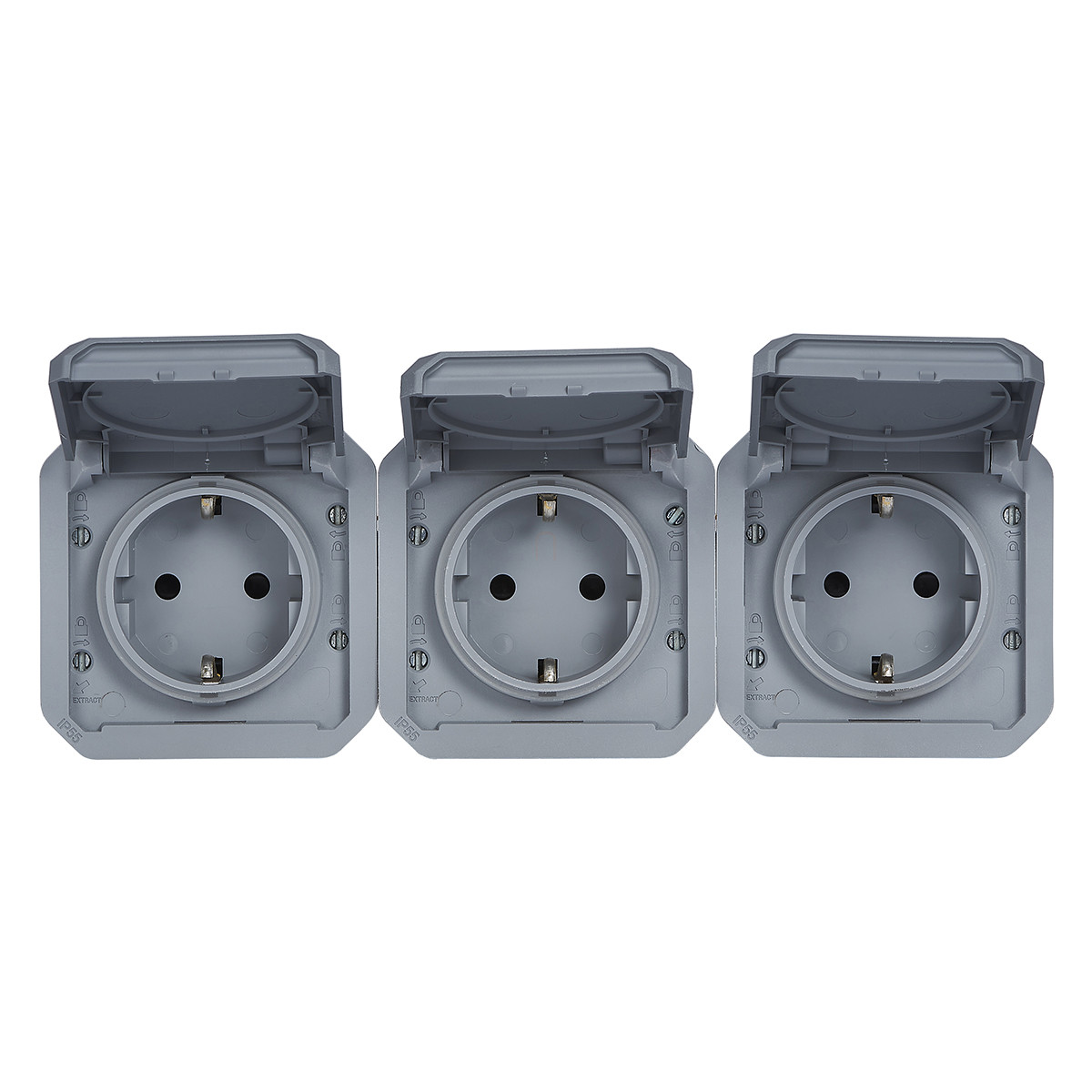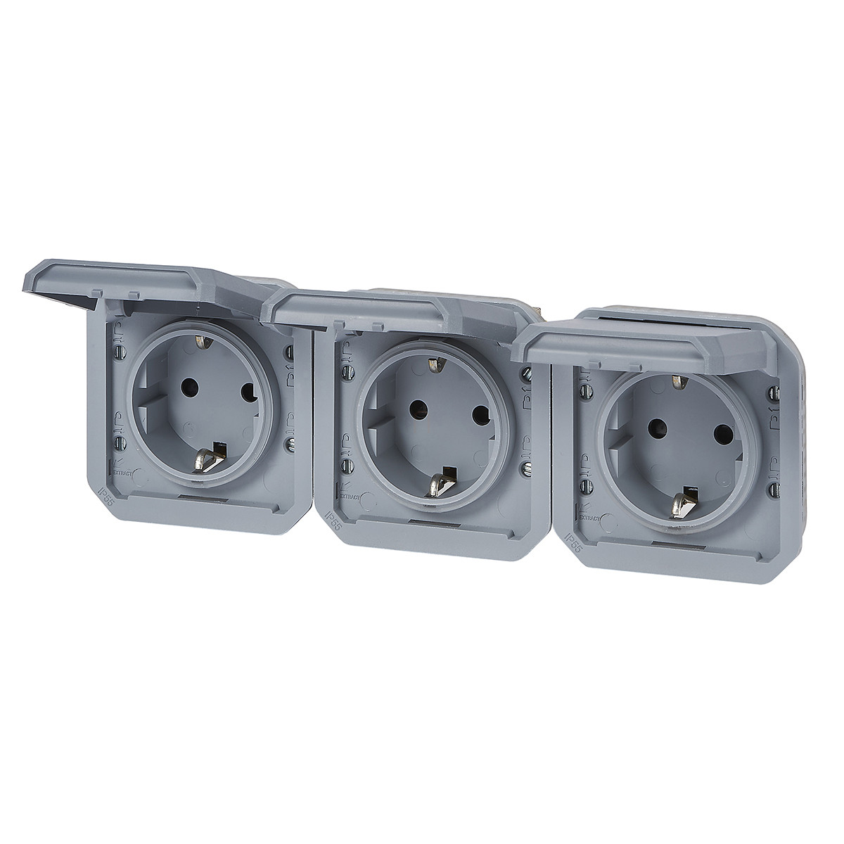 Legrand Plexo 55 3x2P+F elővezetékezett vízszintes csatlakozóaljzat csapófedéllel, szürke - 069578L