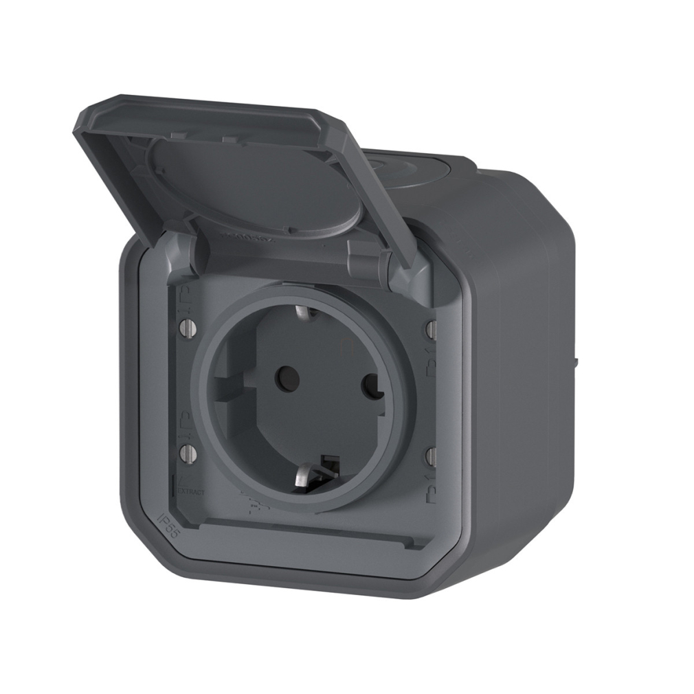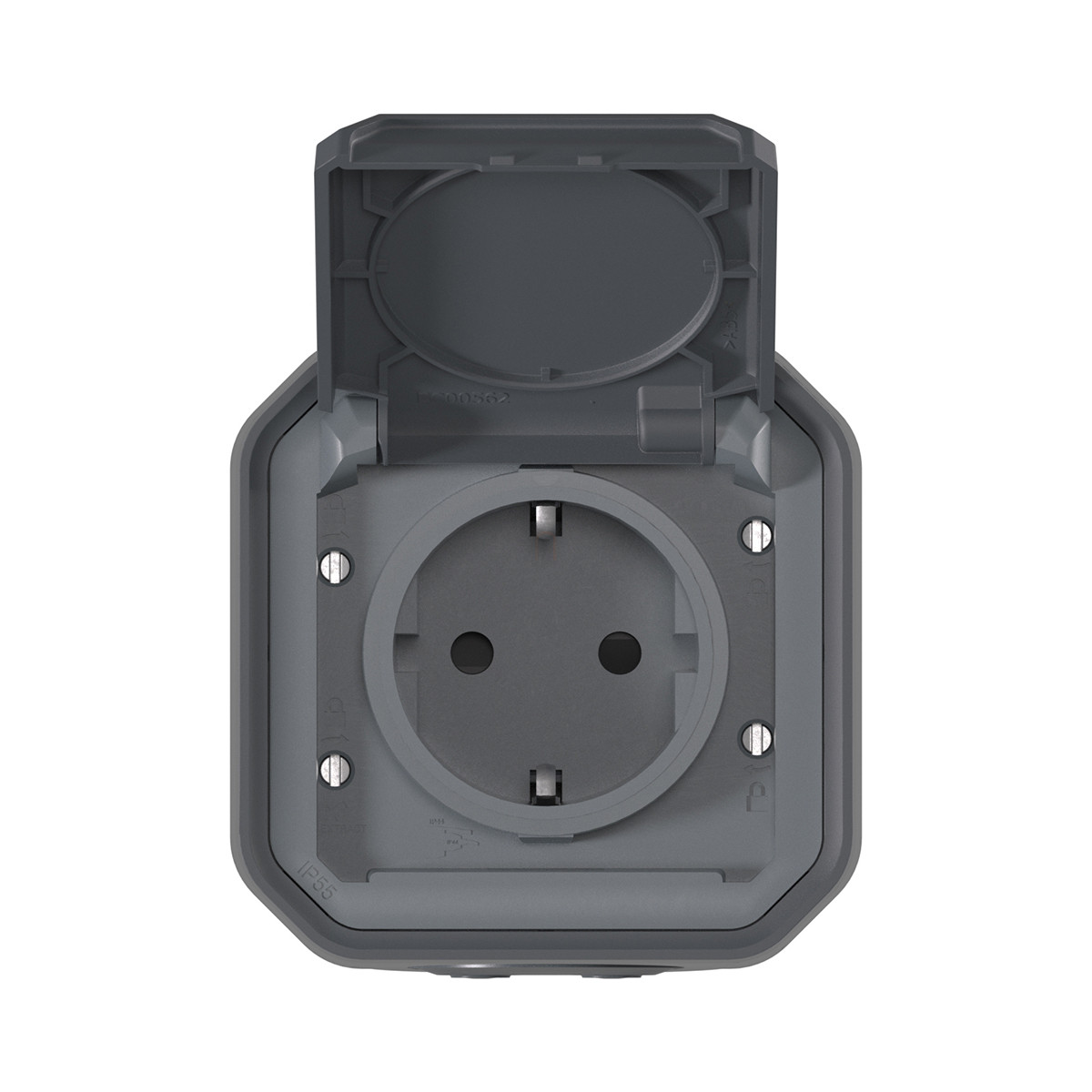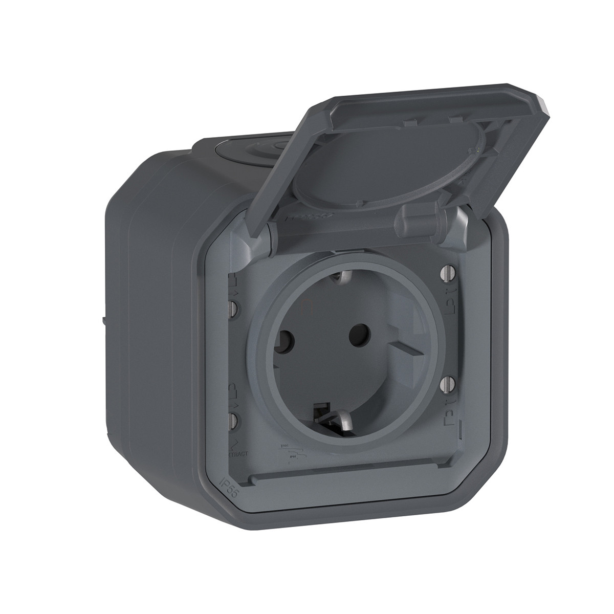 Plexo 55 falon kívüli 2P+F csatlakozóaljzat elektromos kerékpárok töltéséhez 16A, összeszerelt, antracit 069784L Legrand