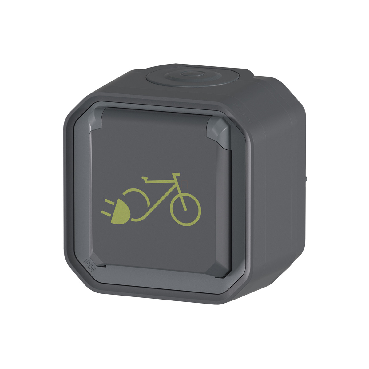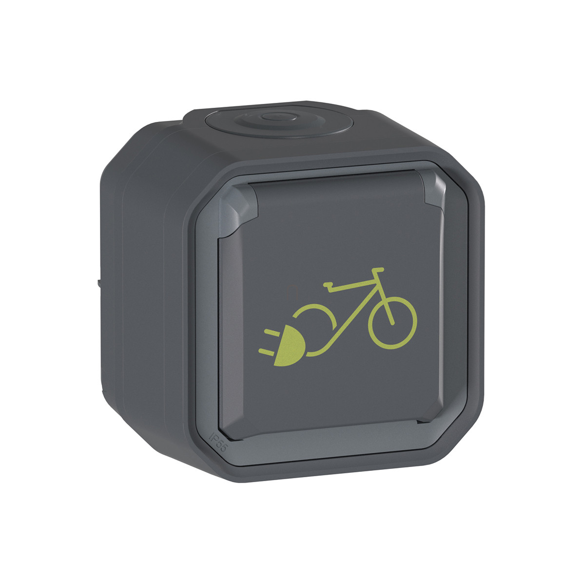 Legrand Plexo 55 falon kívüli 2P+F csatlakozóaljzat elektromos kerékpárok töltéséhez 16A, összeszerelt, antracit - 069784L