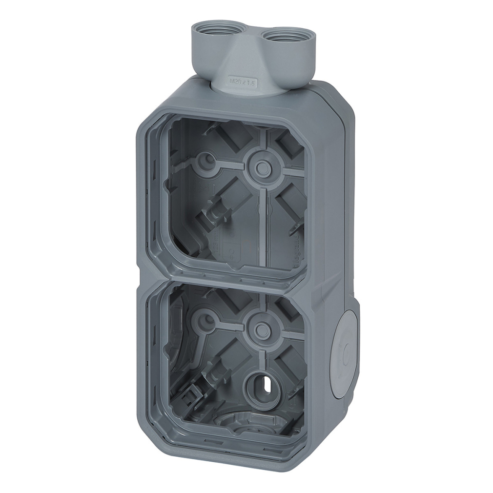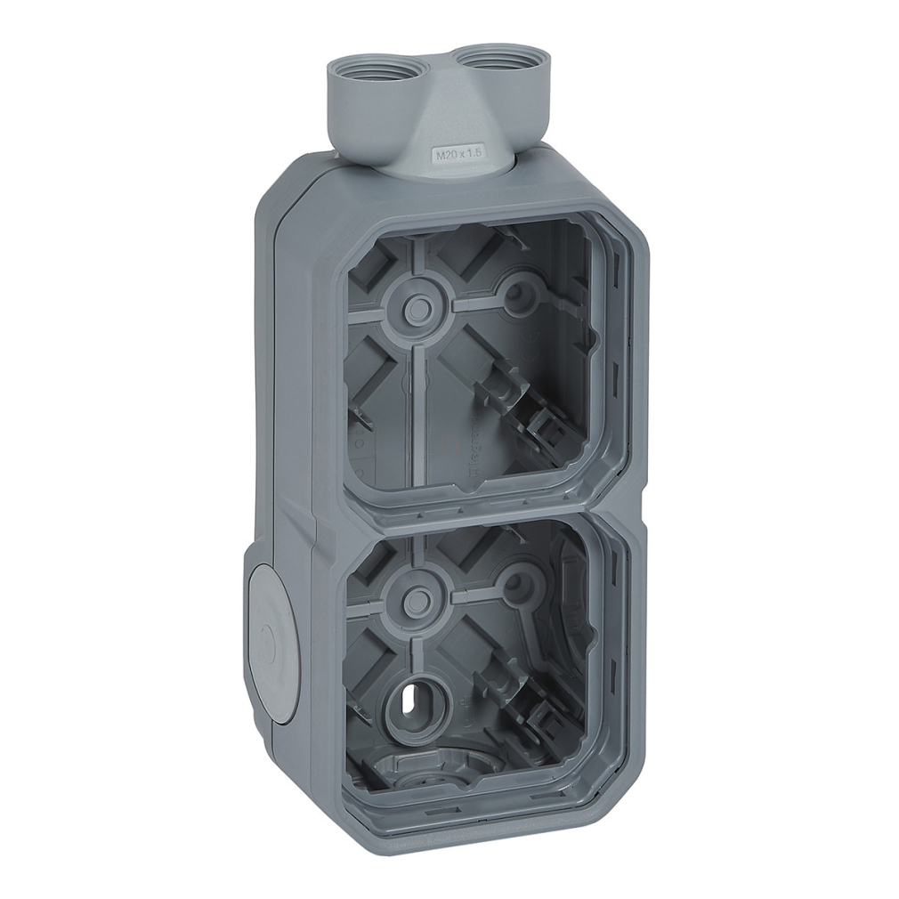 Plexo 55 falon kívüli függőleges 2-es doboz 2 bemenettel, membrános, szürke 069668L Legrand