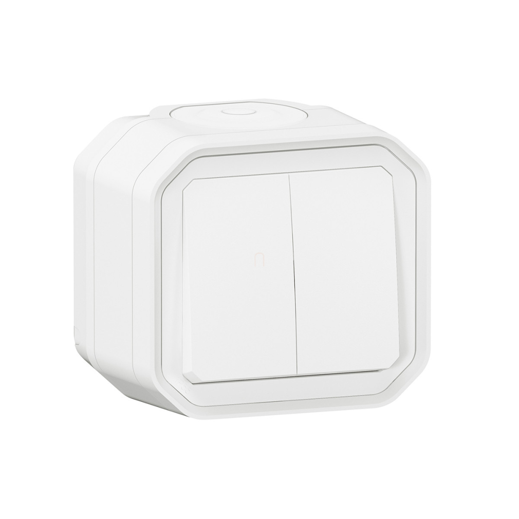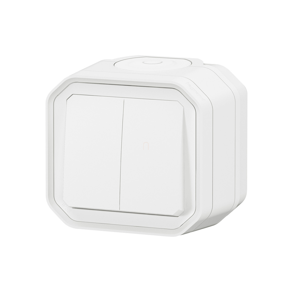 Plexo 55 falon kívüli kettős váltókapcsoló 10A, összeszerelt, fehér 069755L Legrand