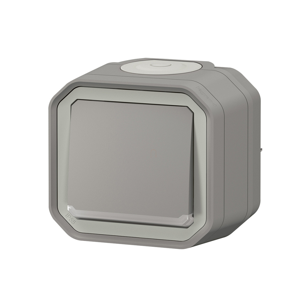 Plexo 55 falon kívüli váltókapcsoló jelzőfénnyel 10A, összeszerelt, szürke 069713L Legrand