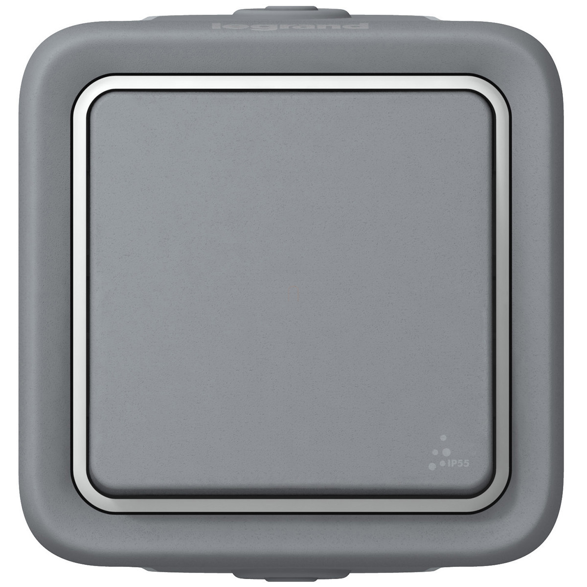 Leg. 069720 Plexo 55 falonkívüli 1P nyomó N/O, komplett, szürke Plexo 55 falonkívüli egypólusú nyomó N/O, komplett, szürke