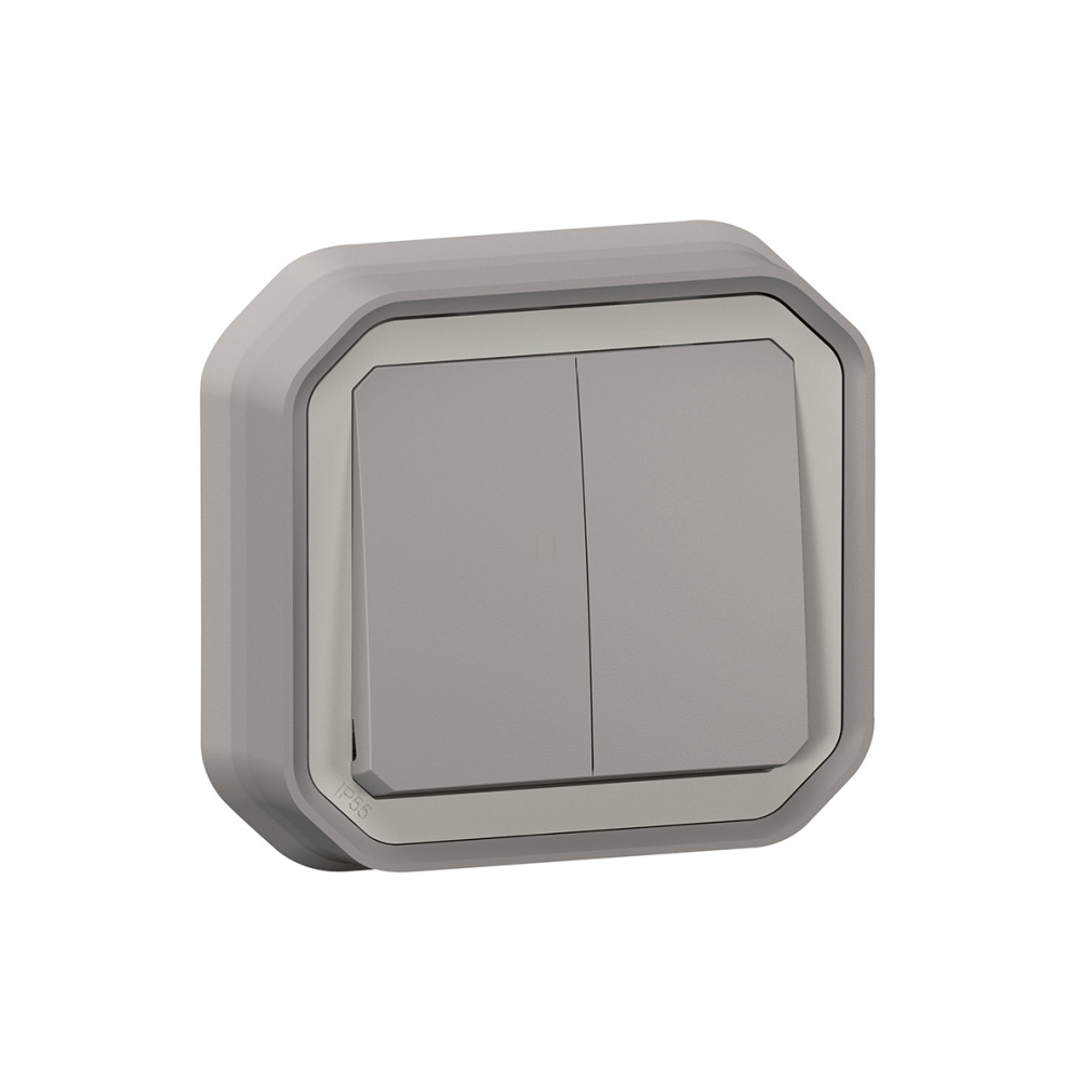 Plexo 55 süllyesztett kettős váltókapcsoló 10A, összeszerelt, szürke 069815L Legrand