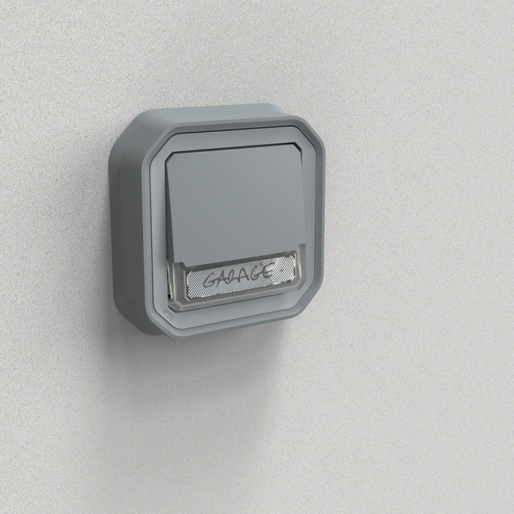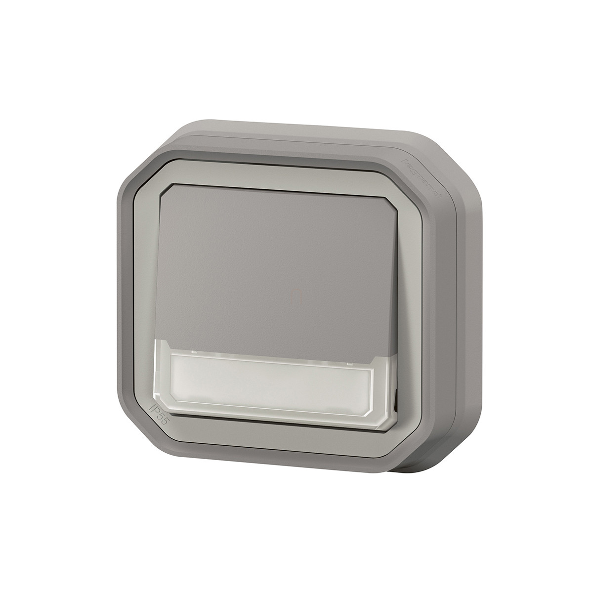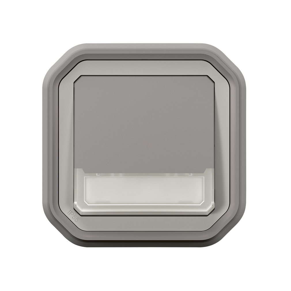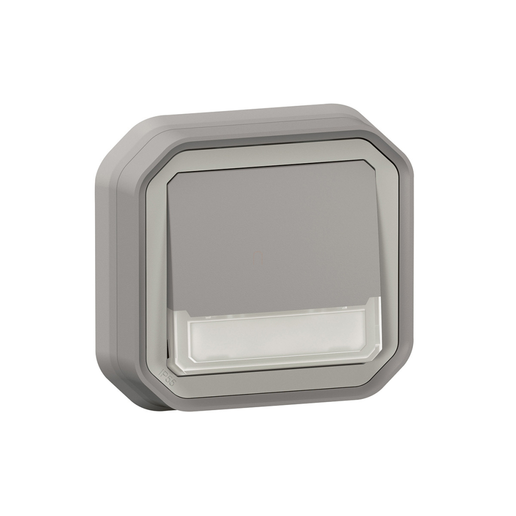 Legrand Plexo 55 süllyesztett váltóérintkezős nyomó jelzőfénnyel, címketartóval 10A, összeszerelt, szürke - 069824L
