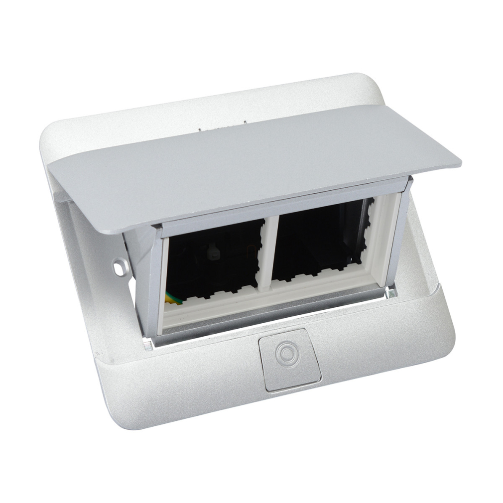 Legrand Pop-up doboz bútorlapba, üres, 4 modul, rögzítőkerettel és kábeltartó dobozzal, alumínium - 654014
