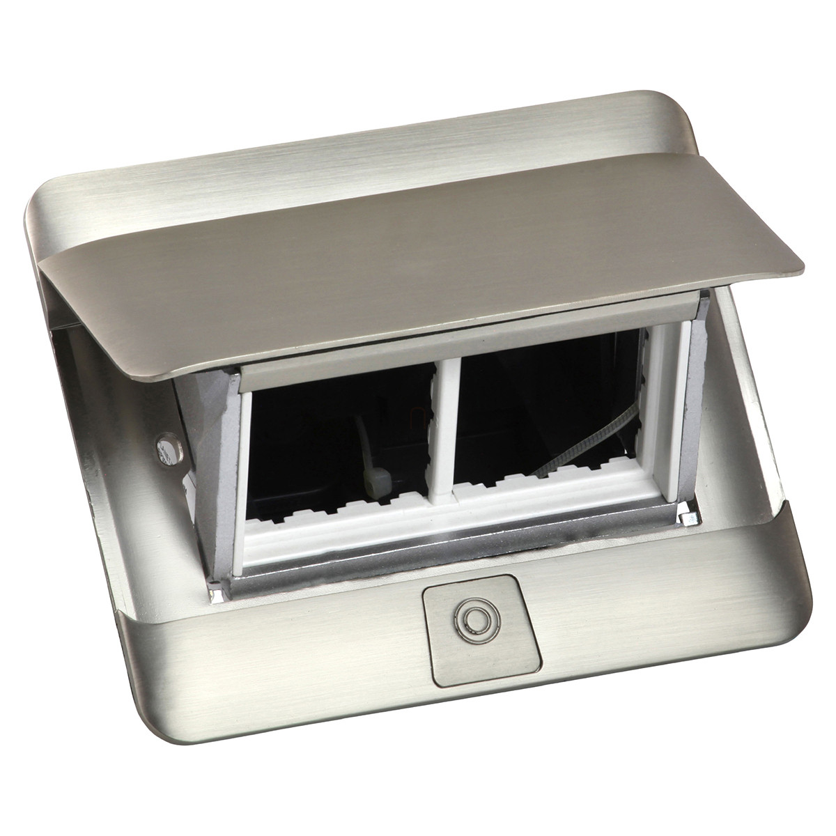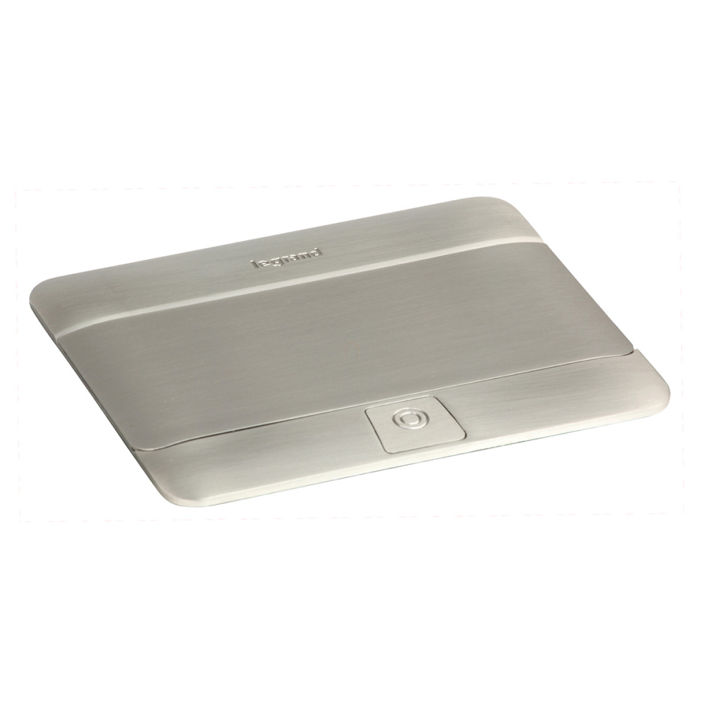 Legrand Pop-up doboz bútorlapba, üres, 4 modul, rögzítőkerettel és kábeltartó dobozzal, rozsdamentes acél - 654000