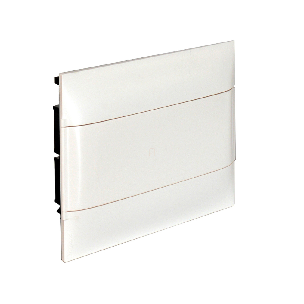Legrand 135161 PractiboxS gipszkartonba süllyeszthető kiselosztó, 1 sor 12 modul, fehér ajtóval, védőföld és nulla elosztókapoccsal
