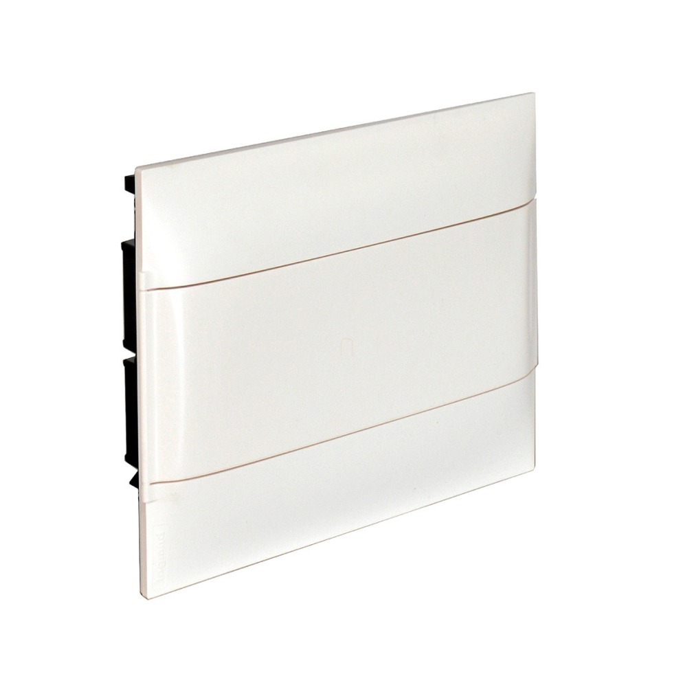 Legrand 135141 PractiboxS téglafalba süllyeszthető kiselosztó, 1 sor 12 modul, fehér ajtóval, védőföld és nulla elosztókapoccsal