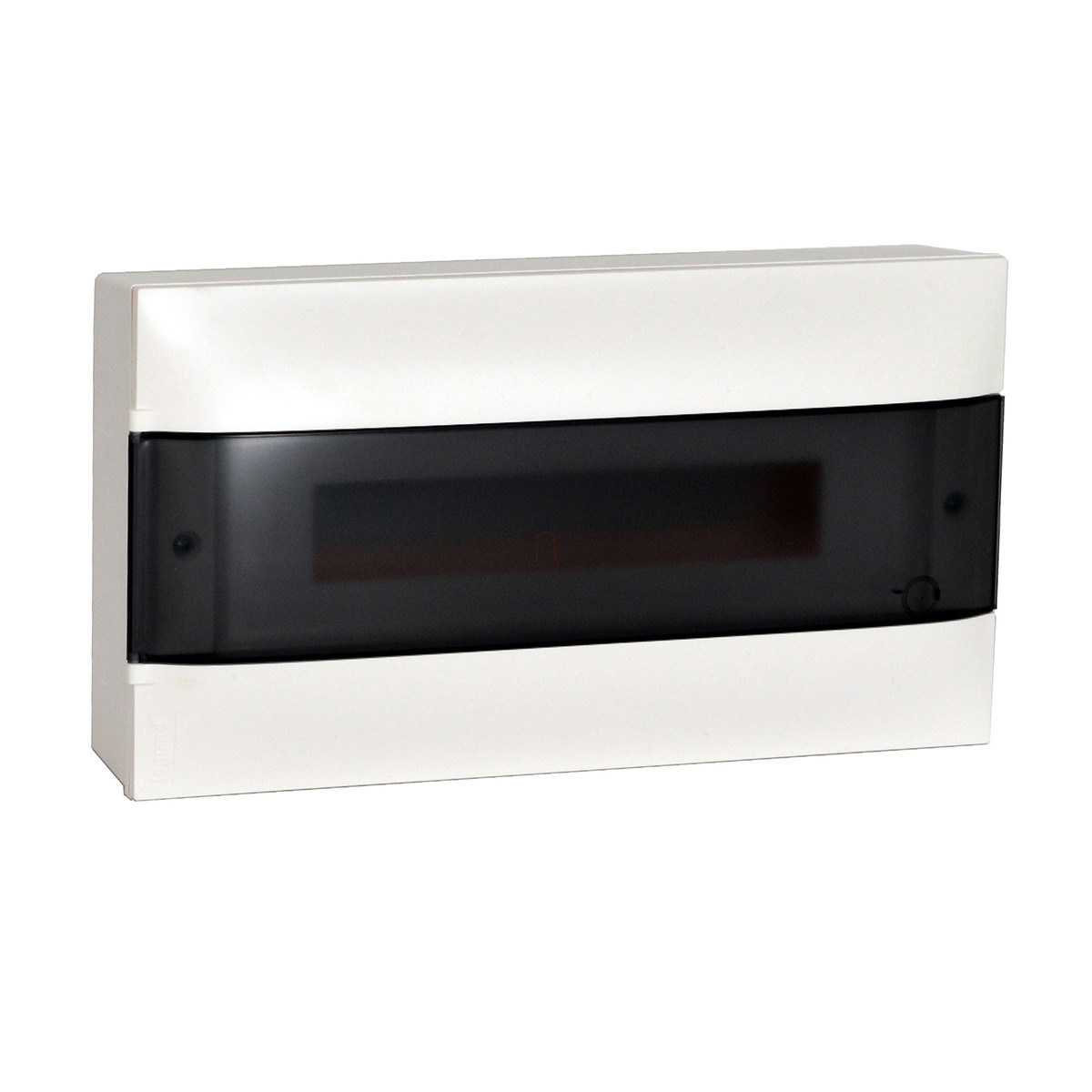 Legrand 137216 PractiboxS falon kívüli kiselosztó, 1 sor 18 modul, átlátszó füstszínű ajtóval, védőföld és nulla elosztókapoccsal