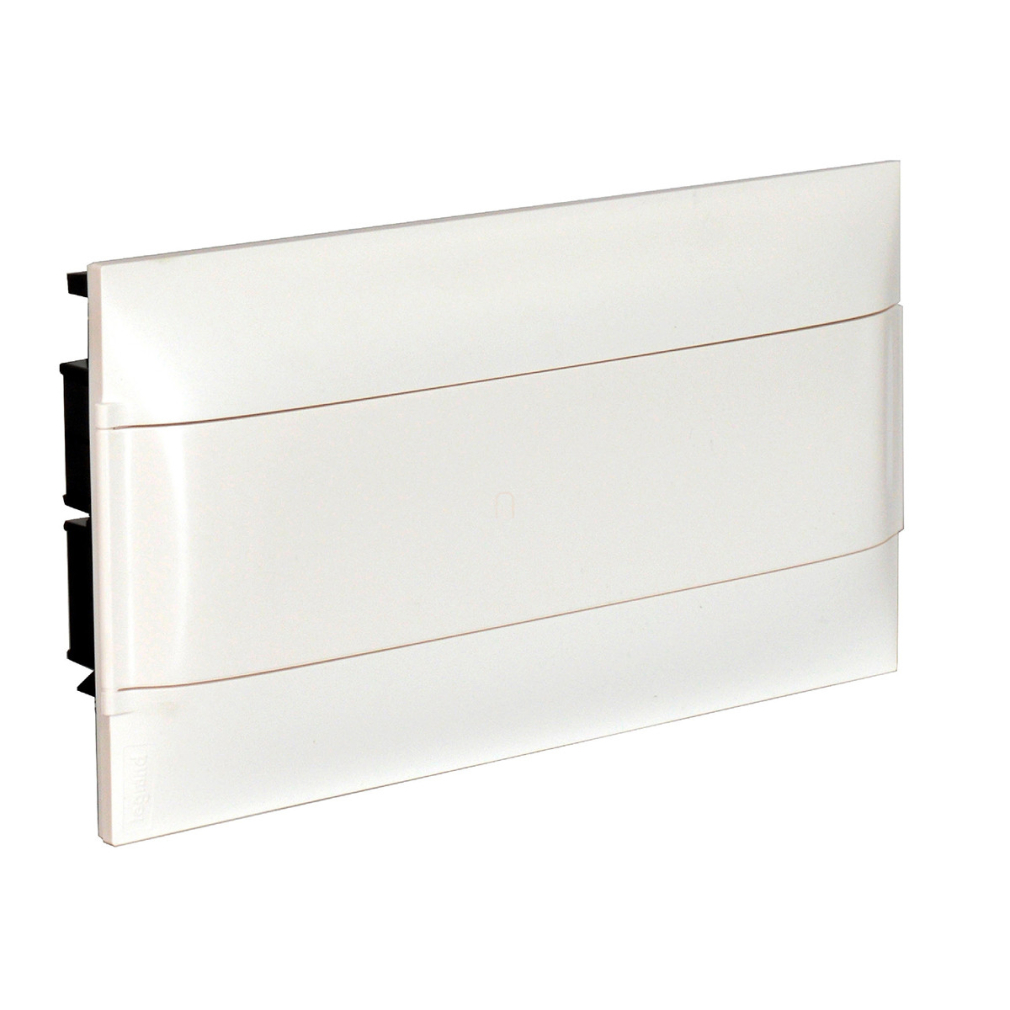 Legrand 137166 PractiboxS gipszkartonba süllyeszthető kiselosztó, 1 sor 18 modul, fehér ajtóval, védőföld és nulla elosztókapoccsal