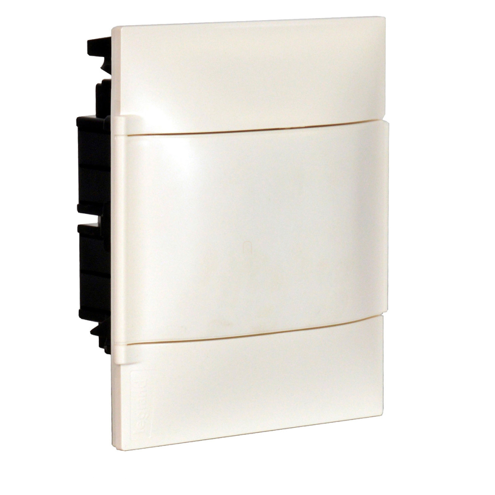 Legrand 134166 PractiboxS gipszkartonba süllyeszthető kiselosztó, 1 sor 6 modul, fehér ajtóval, védőföld és nulla elosztókapoccsal