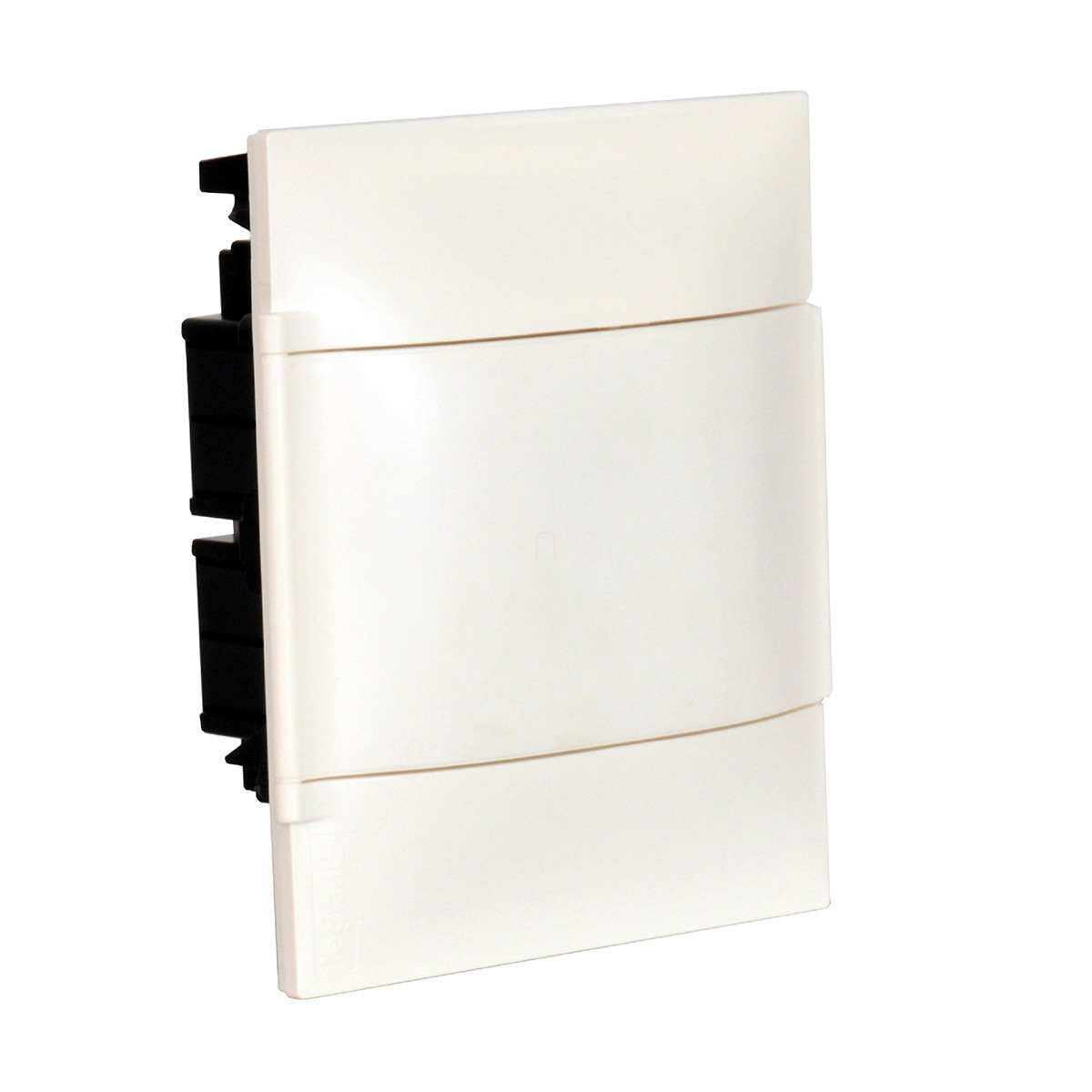 Legrand 134168 PractiboxS gipszkartonba süllyeszthető kiselosztó, 1 sor 8 modul, fehér ajtóval, védőföld és nulla elosztókapoccsal