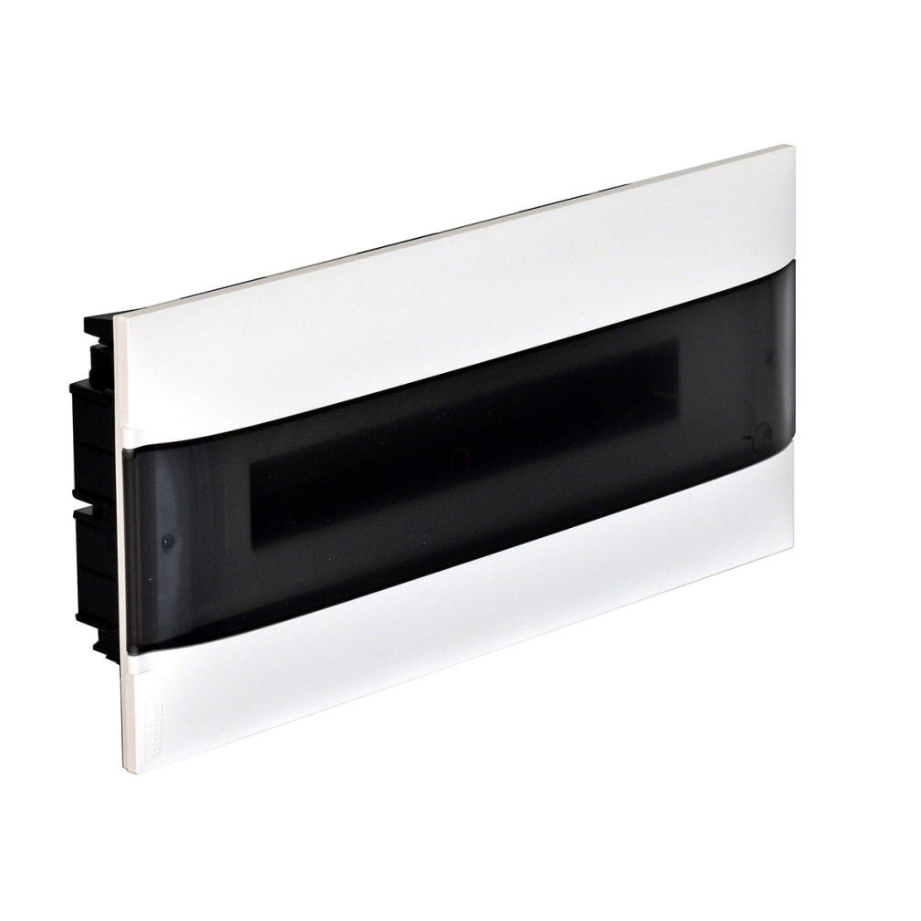 Legrand PractiboxS 1sor 22 modul, gipszkartonba süllyeszthető kiselosztó(850°C), átlátszó füstszínű ajtóval, védőföld és nulla elosztókapoccsal - 137175