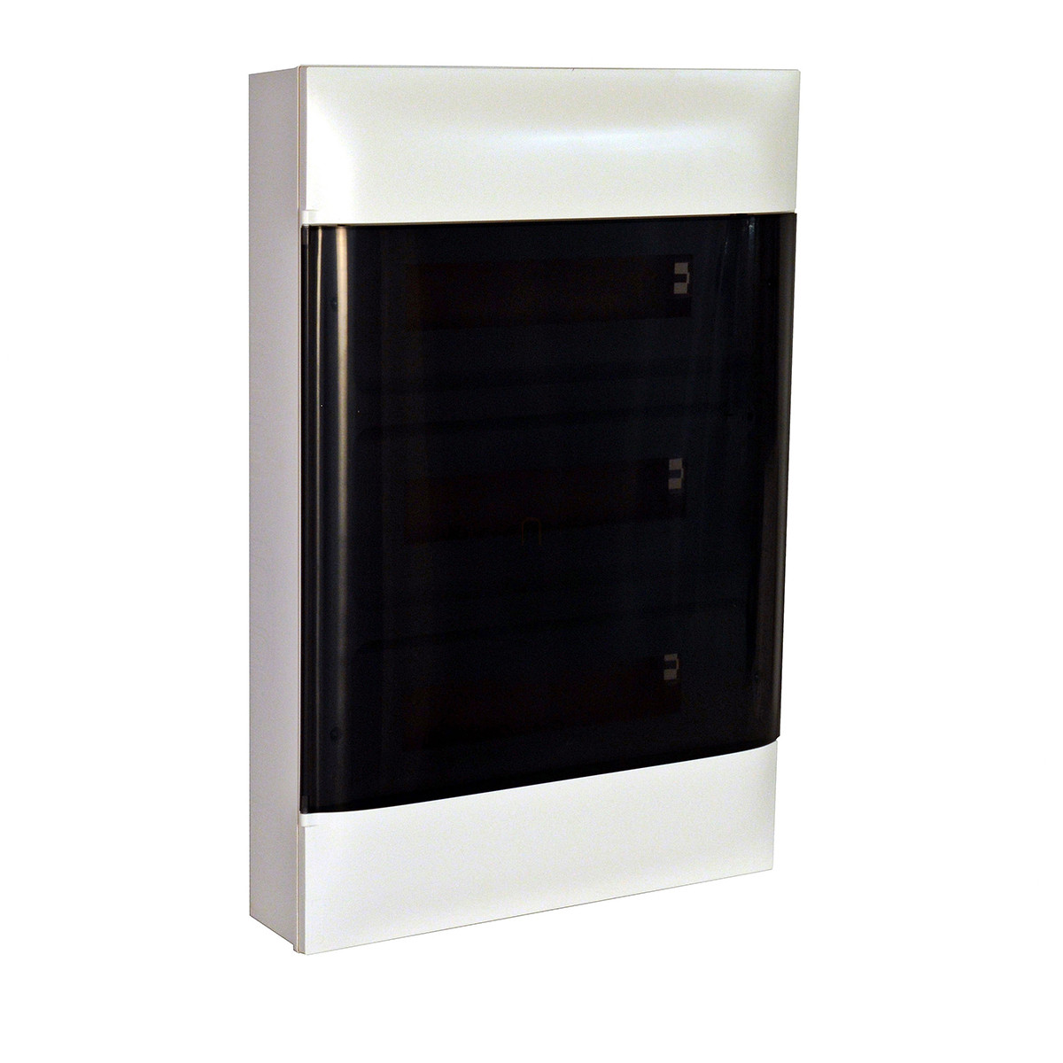 Legrand 135213 PractiboxS falon kívüli kiselosztó, 3 sor 12 modul, átlátszó füstszínű ajtóval, védőföld és nulla elosztókapoccsal