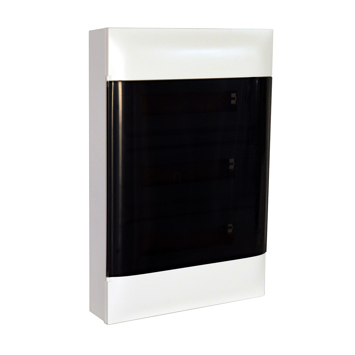 Legrand 137218 PractiboxS falon kívüli kiselosztó, 3 sor 18 modul, átlátszó füstszínű ajtóval, védőföld és nulla elosztókapoccsal