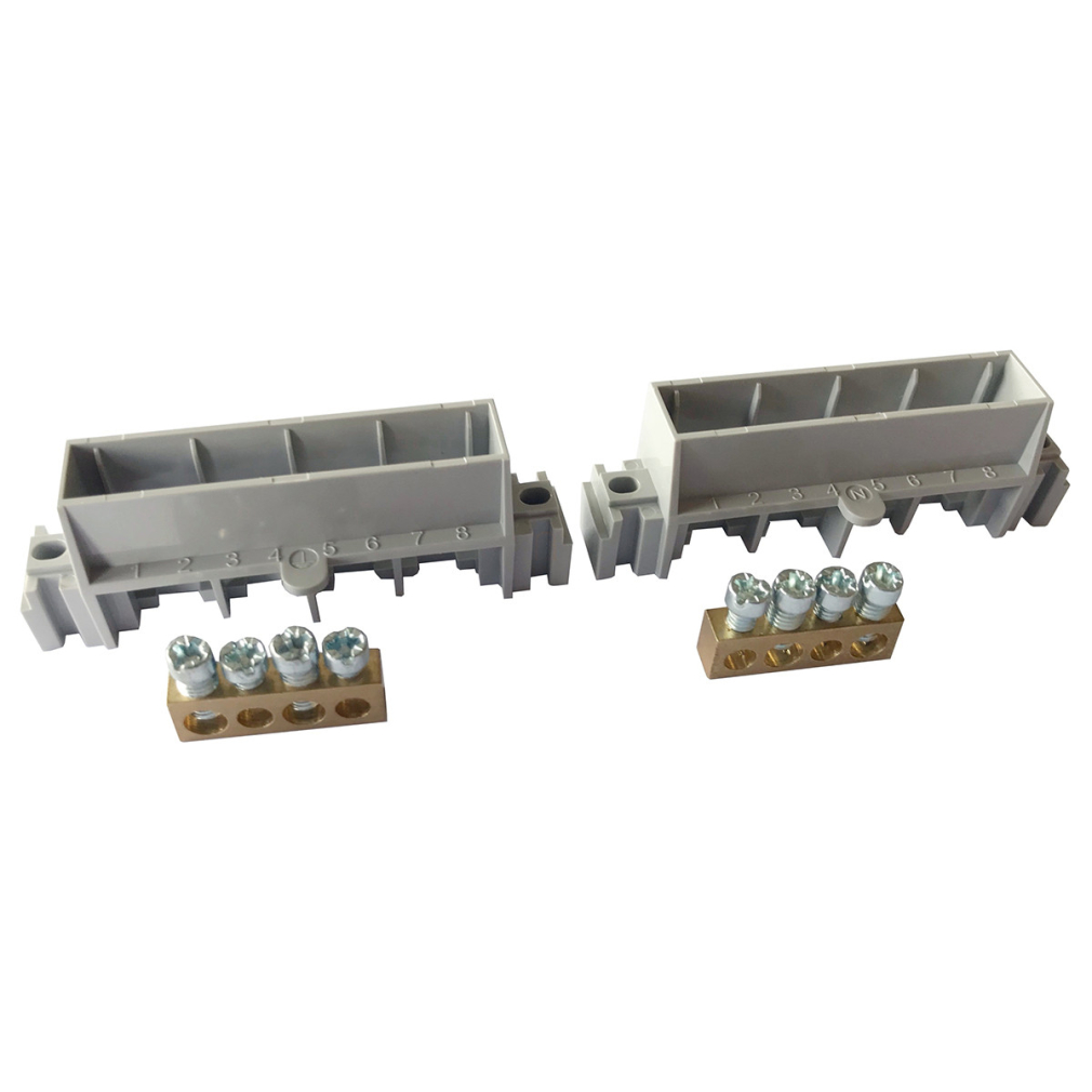 Legrand 134810 PractiboxS csupasz PE+N elosztókapocs szigetelt tartóval, 4 modulos szekrényhez, 2 x (2x16mm2 + 2x10mm2) Icc=6 kA