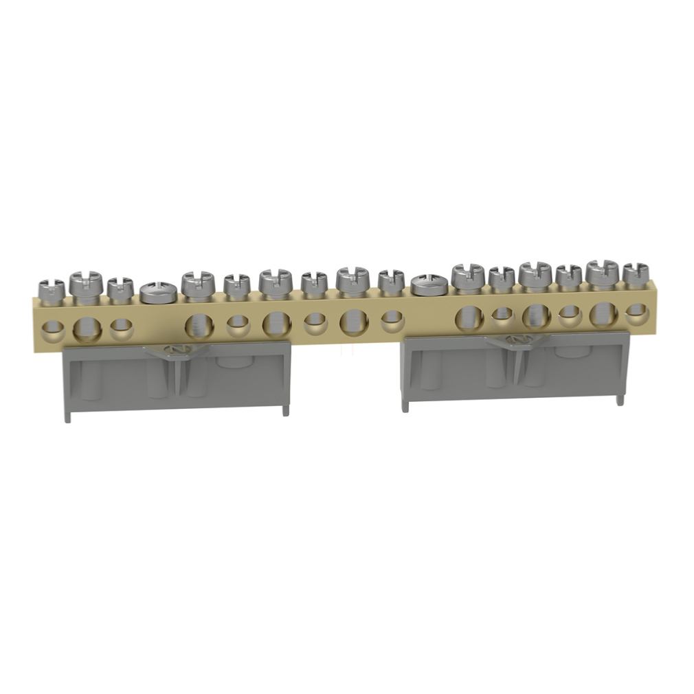Legrand PractiboxS csavarral rögzíthető csupasz sárgaréz N elosztókapocs, 15 kötési pont, 7x16mm² + 8x10mm²; Icc=6 kA - 134012