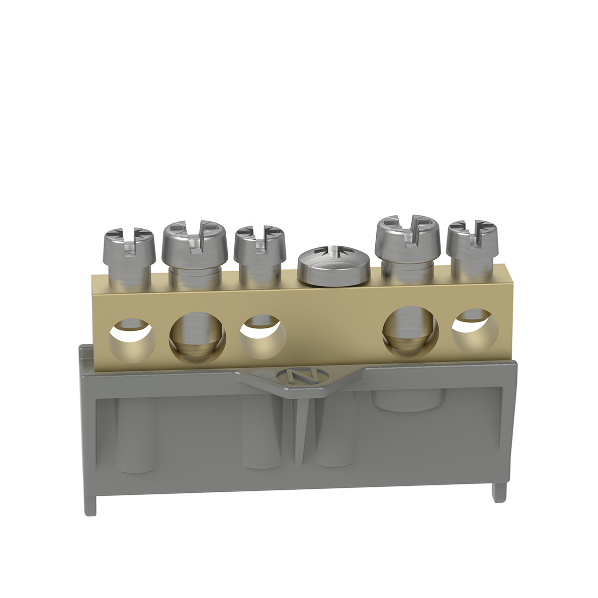 Legrand 134010 PractiboxS csavarral rögzíthető csupasz sárgaréz N elosztókapocs, 5 kötési pont, 2x16mm2 + 3x10mm2, Icc=6 kA