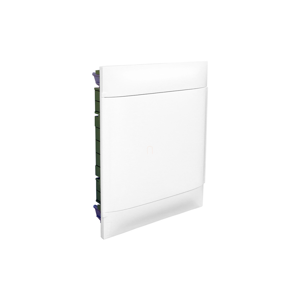 Legrand 135722 PractiboxS multimédiás elosztószekrény, gipszkartonba süllyeszthető, fehér ajtóval, 2x2 + 4x2 modul fogadására alkalmas