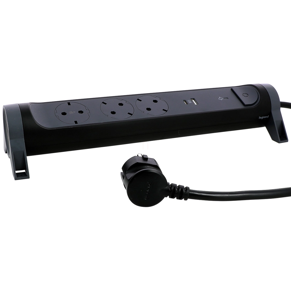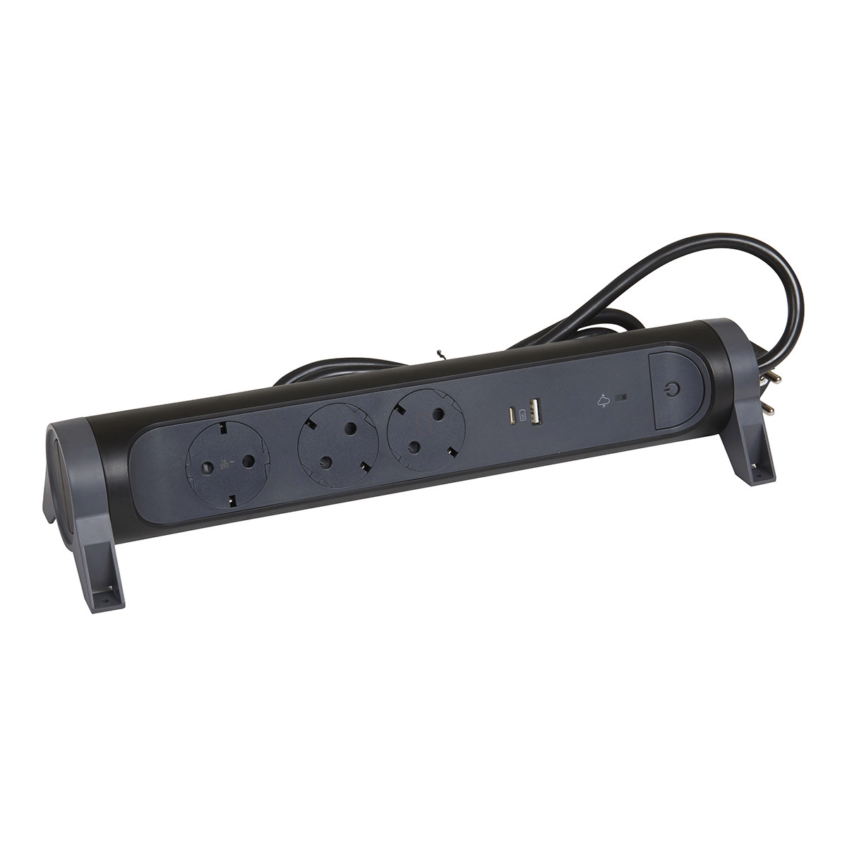 Legrand Premium elosztósor 3x2P+F, túlfeszültség-védelemmel, USB-A + USB-C, 1, 5 m vezetékkel, fekete - 694512