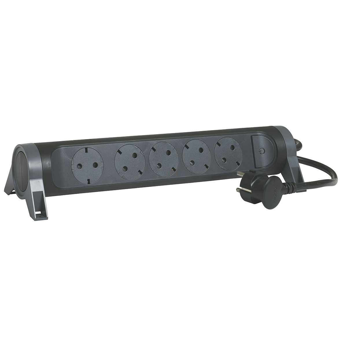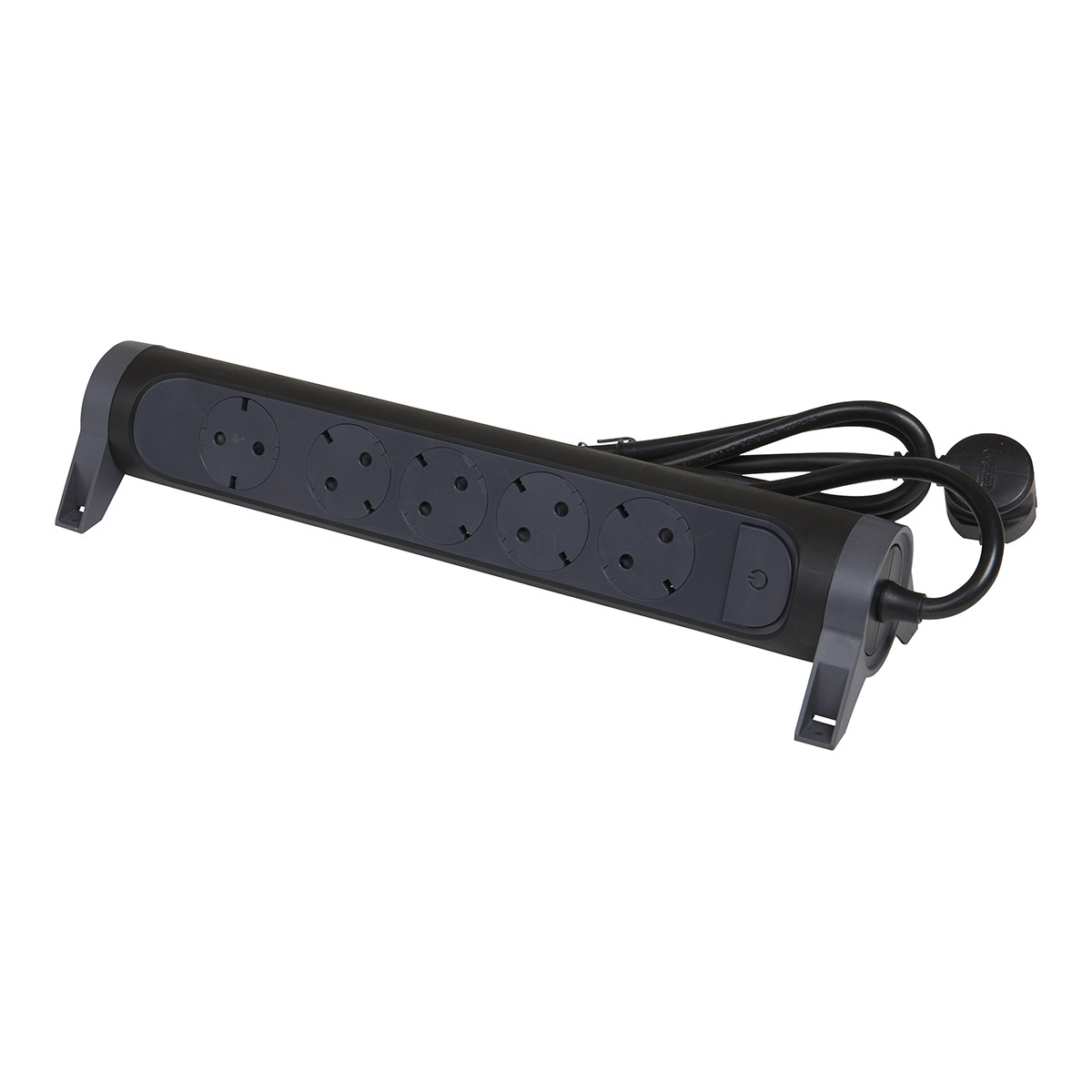 Hálózati elosztó 5db aljzat 1,5fm vezetékkel, kapcsolóval, falra szerelhető, forgatható, fekete Premium 694532 Legrand