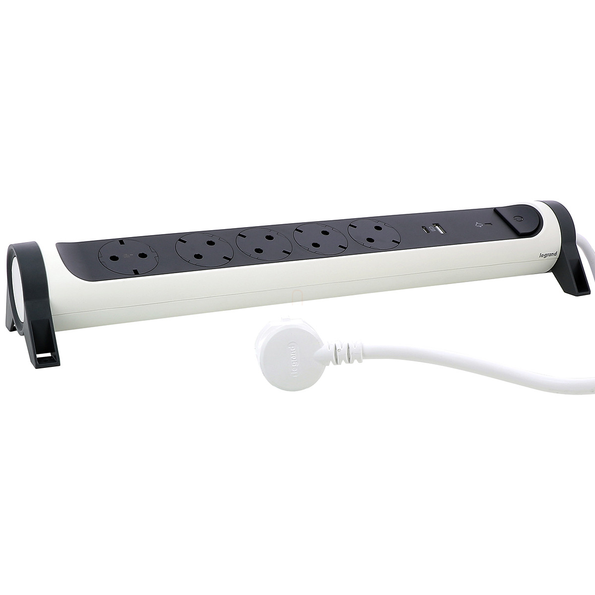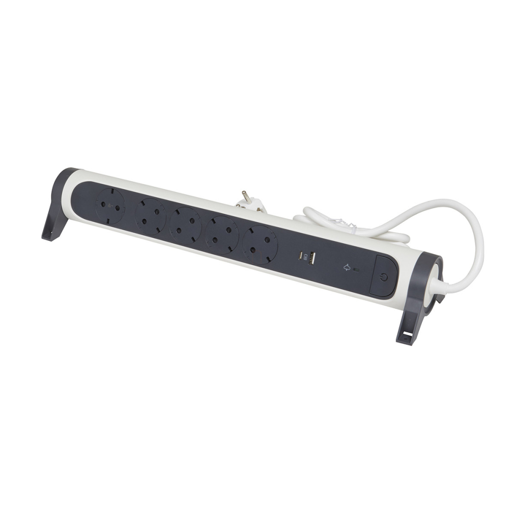 Legrand Premium elosztósor 5x2P+F, túlfeszültség-védelemmel, USB-A + USB-C, 1, 5 m vezetékkel, fehér/fekete - 694510