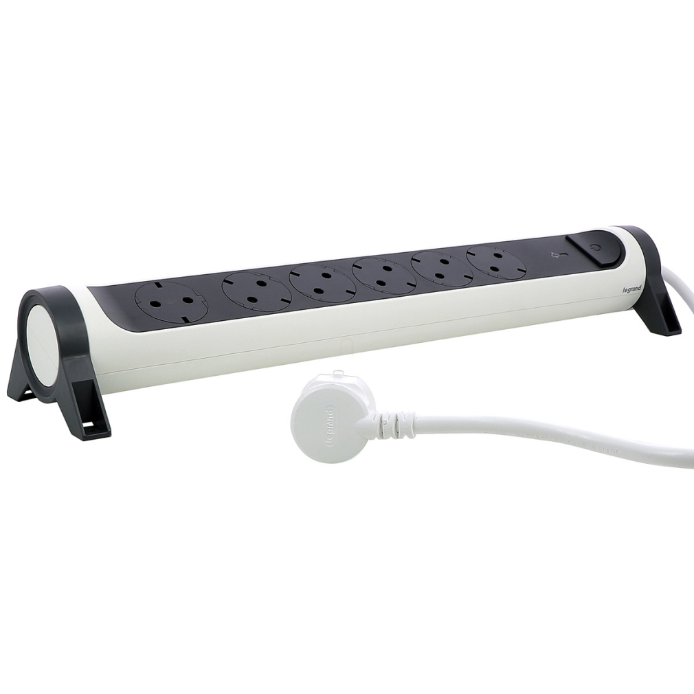 Legrand Premium elosztósor 6x2P+F, túlfeszültség-védelemmel, 1, 5 m vezetékkel, fehér/fekete - 694509