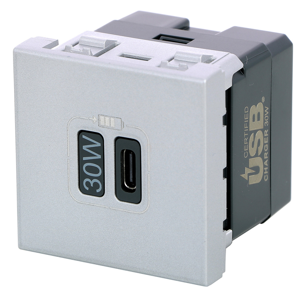 Legrand Program Mosaic 1 x USB-C Power Delivery töltőaljzat-3 A-30 W, 2 modul, alumínium - 079385L