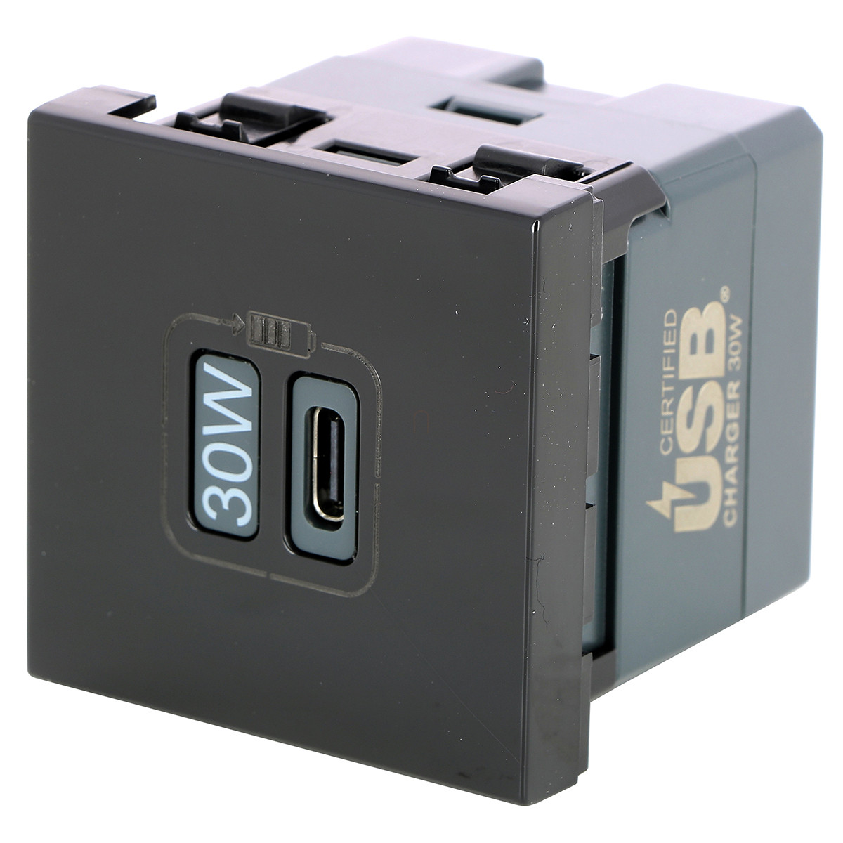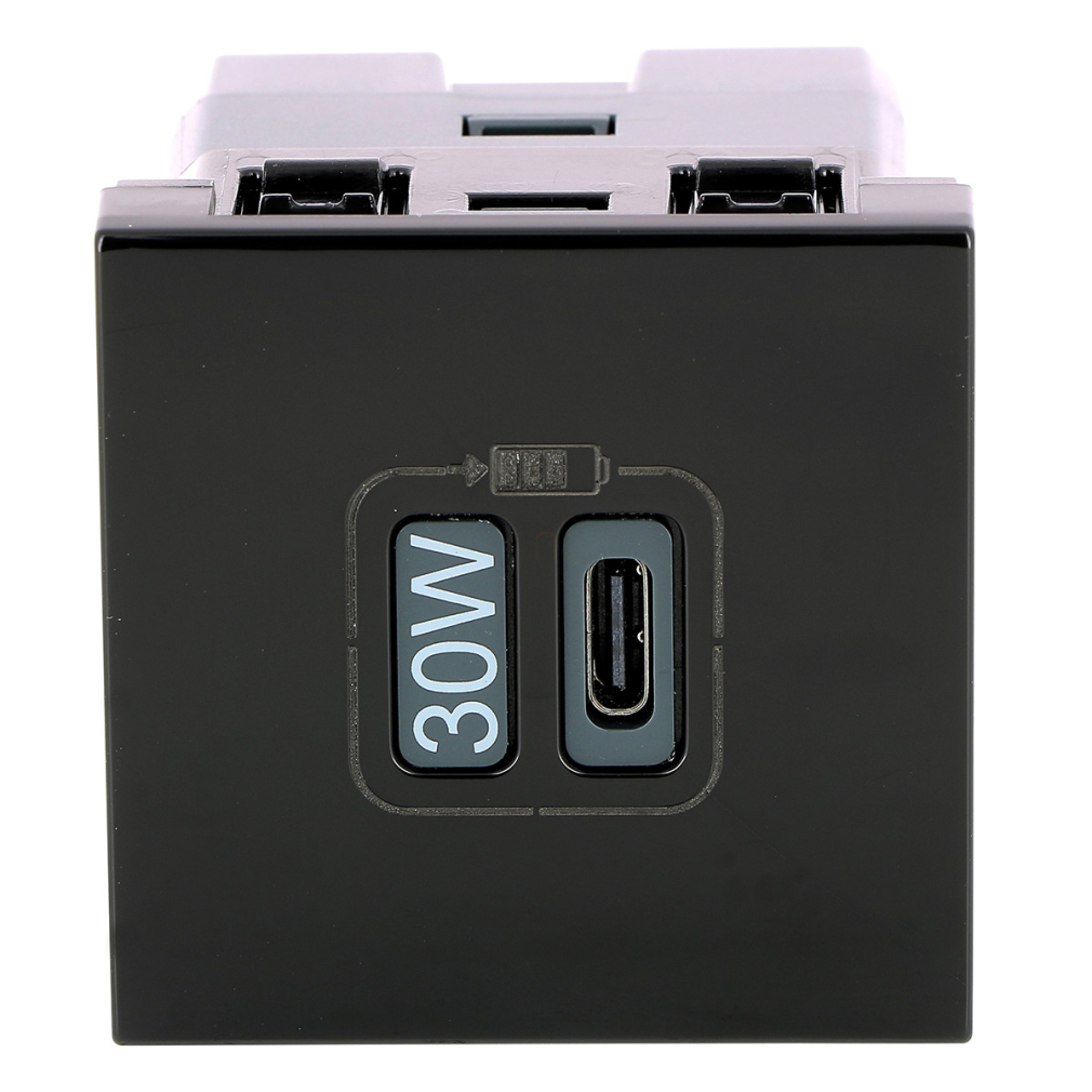 Legrand Program Mosaic 1 x USB-C Power Delivery töltőaljzat-3 A-30 W, 2 modul, fekete - 079185L