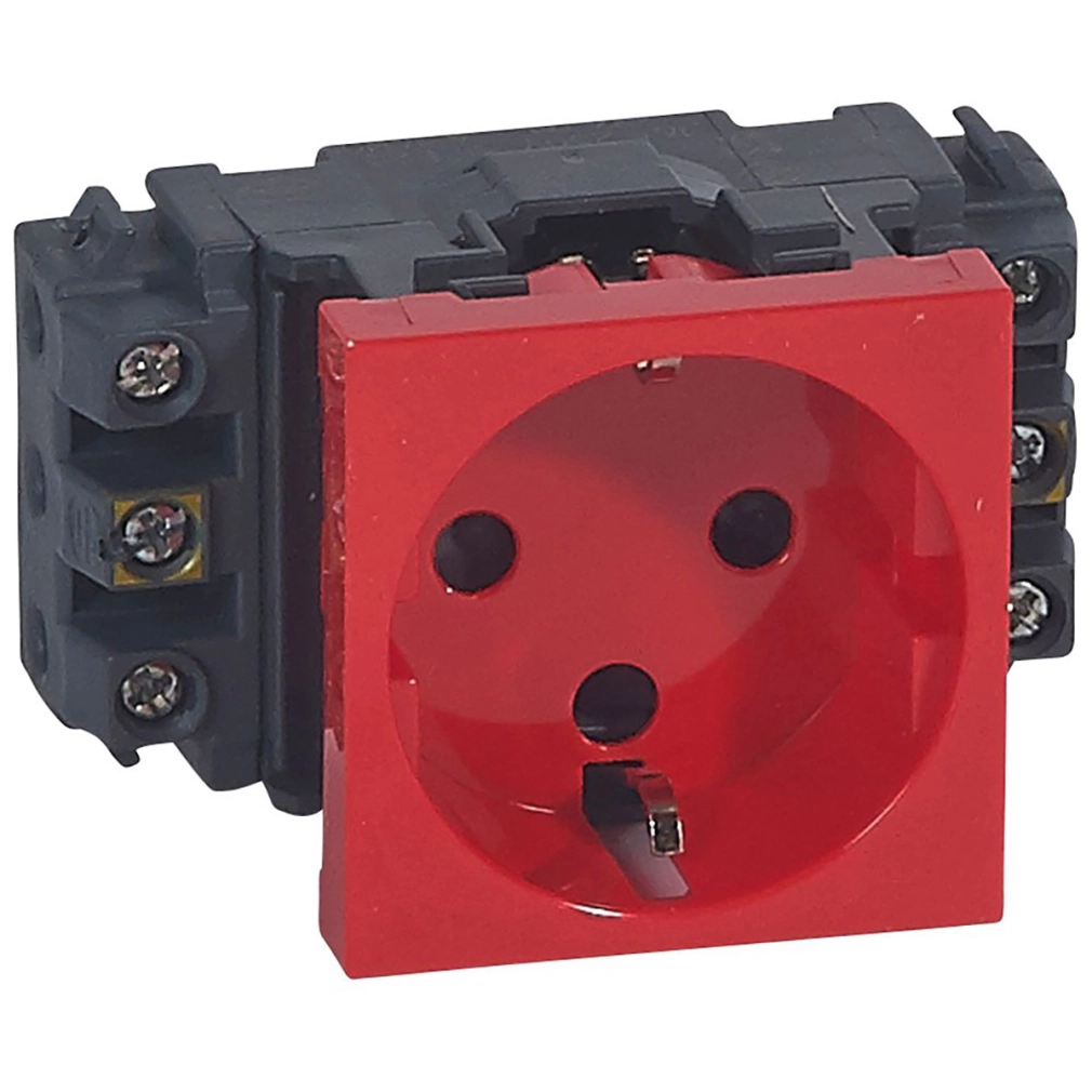 Legrand Program Mosaic 1x2P+F DLP aljzat reteszelt, sínezett, csavaros, piros - 77621
