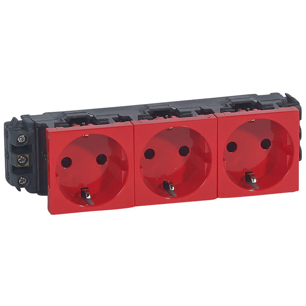 Legrand Program Mosaic 3x2P+F DLP aljzat, sínezett, csavaros, piros - 77613