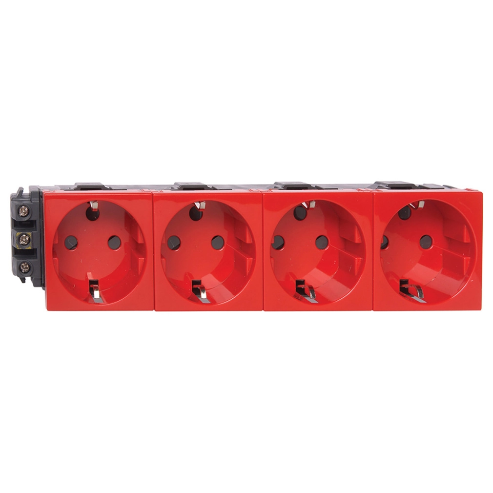 Legrand Program Mosaic 4x2P+F DLP aljzat reteszelt, sínezett, csavaros, piros - 77624