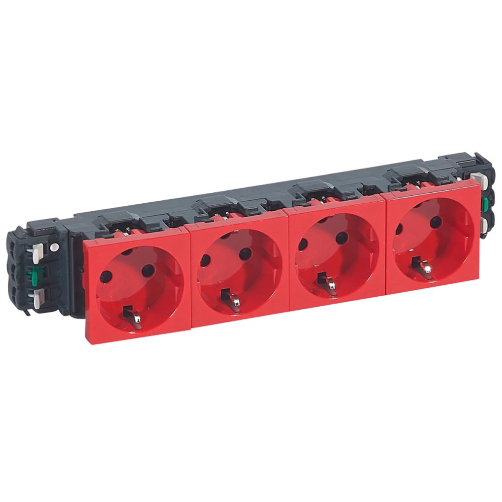 Legrand Program Mosaic 4x2P+F DLP aljzat reteszelt, sínezett, rugós, piros - 77424