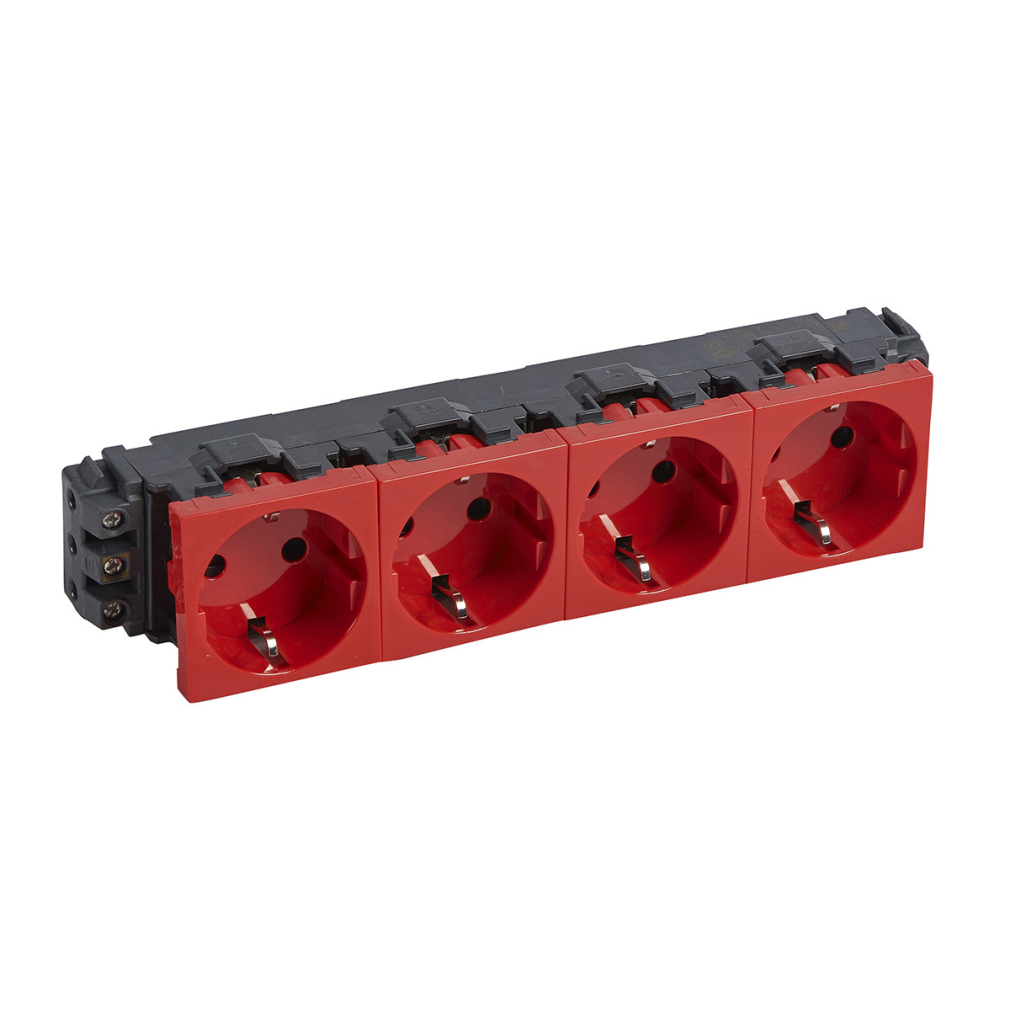 Legrand Program Mosaic 4x2P+F DLP aljzat, sínezett, csavaros, piros - 77614