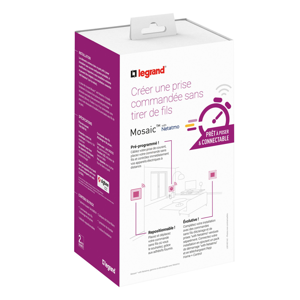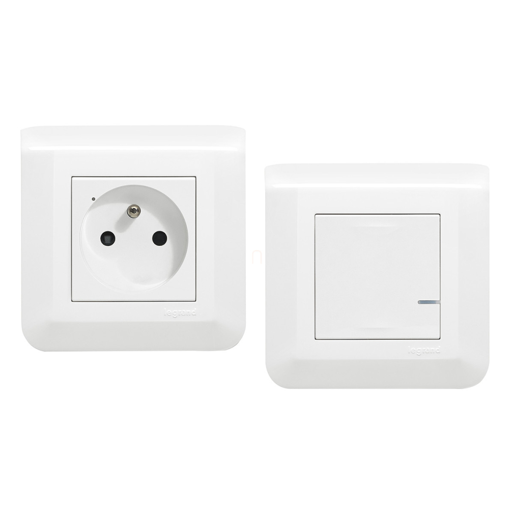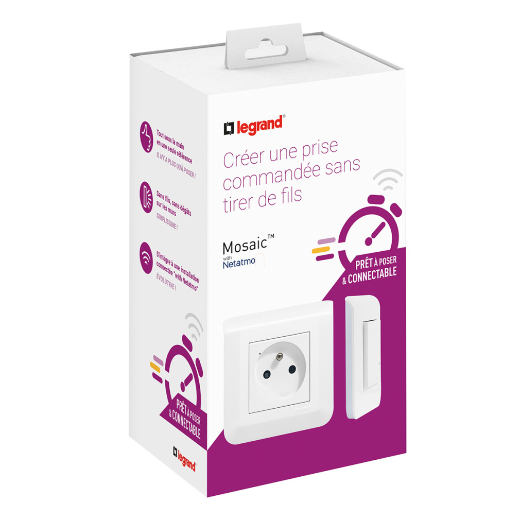 Legrand Program Mosaic előre párosított csatlakozóaljzat szett 1 db okos csatlakozóaljzatból és 1 db szimpla távvezérlő kapcsolóból álló készlet - 077734L