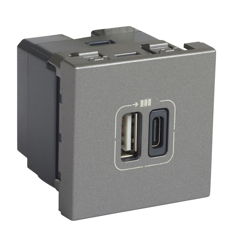 Legrand Program Mosaic kettős USB-A és USB-C-230 V-5 V, 2 modul, alumínium - 79392