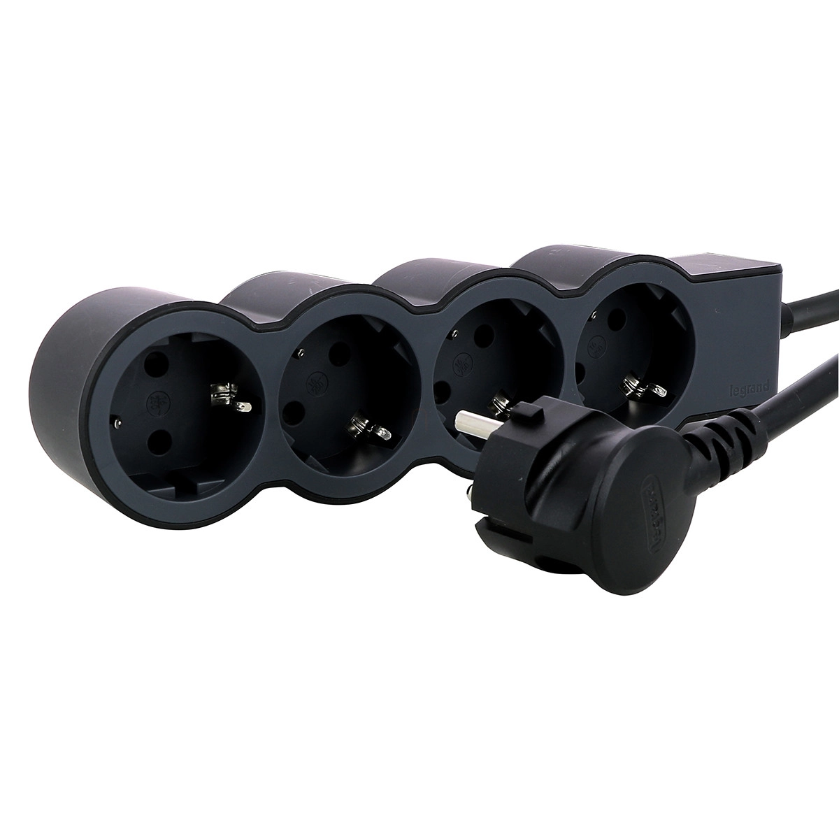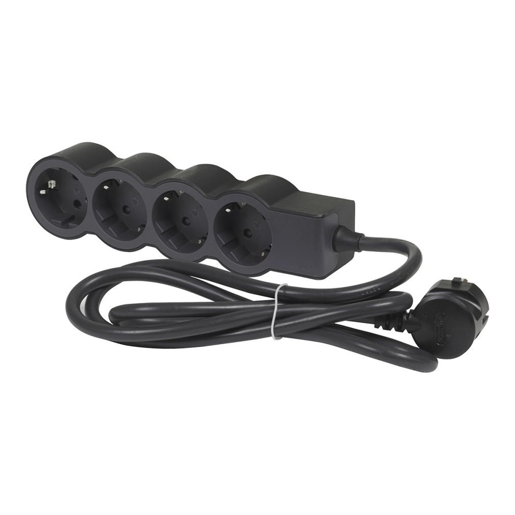 Hálózati elosztó 4db aljzat 5fm vezetékkel, fekete Standard 694570 Legrand