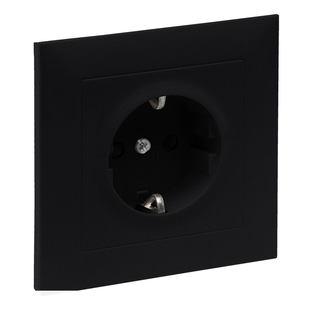Legrand Suno 2P+F csatlakozóaljzat kerettel (rugós), biztonsági zsaluval, komplett, fekete - 721428