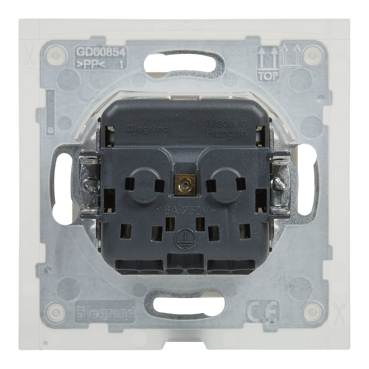 Suno fehér 2P+F GYV IP44 csatlakozóaljzat (rugós), biztonsági zsaluval, keret nélkül 721123 Legrand