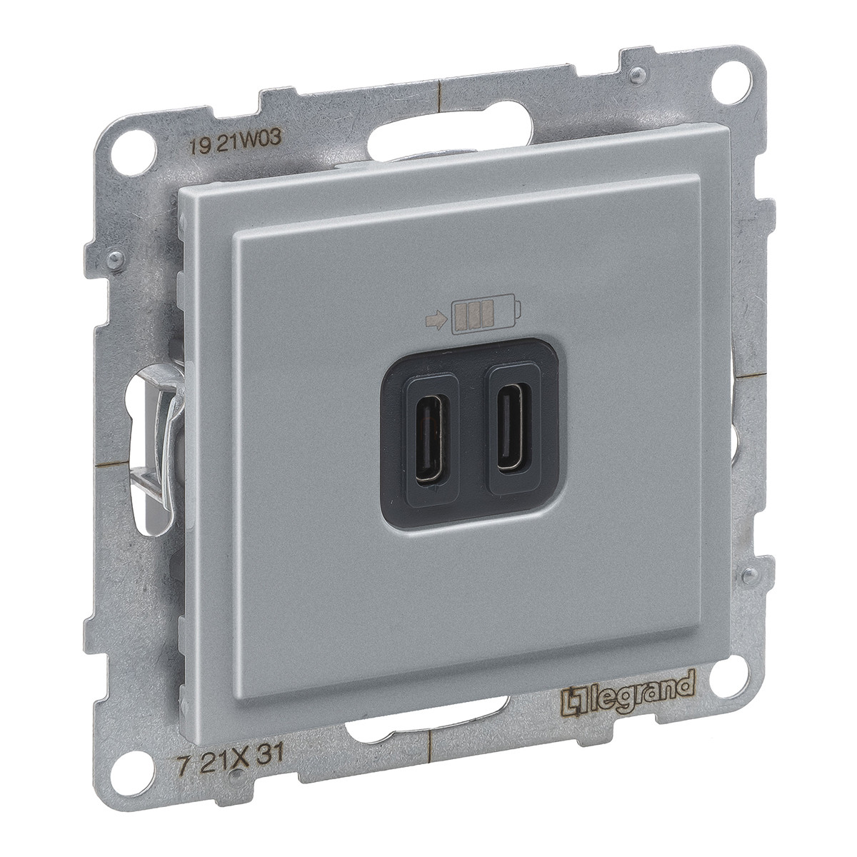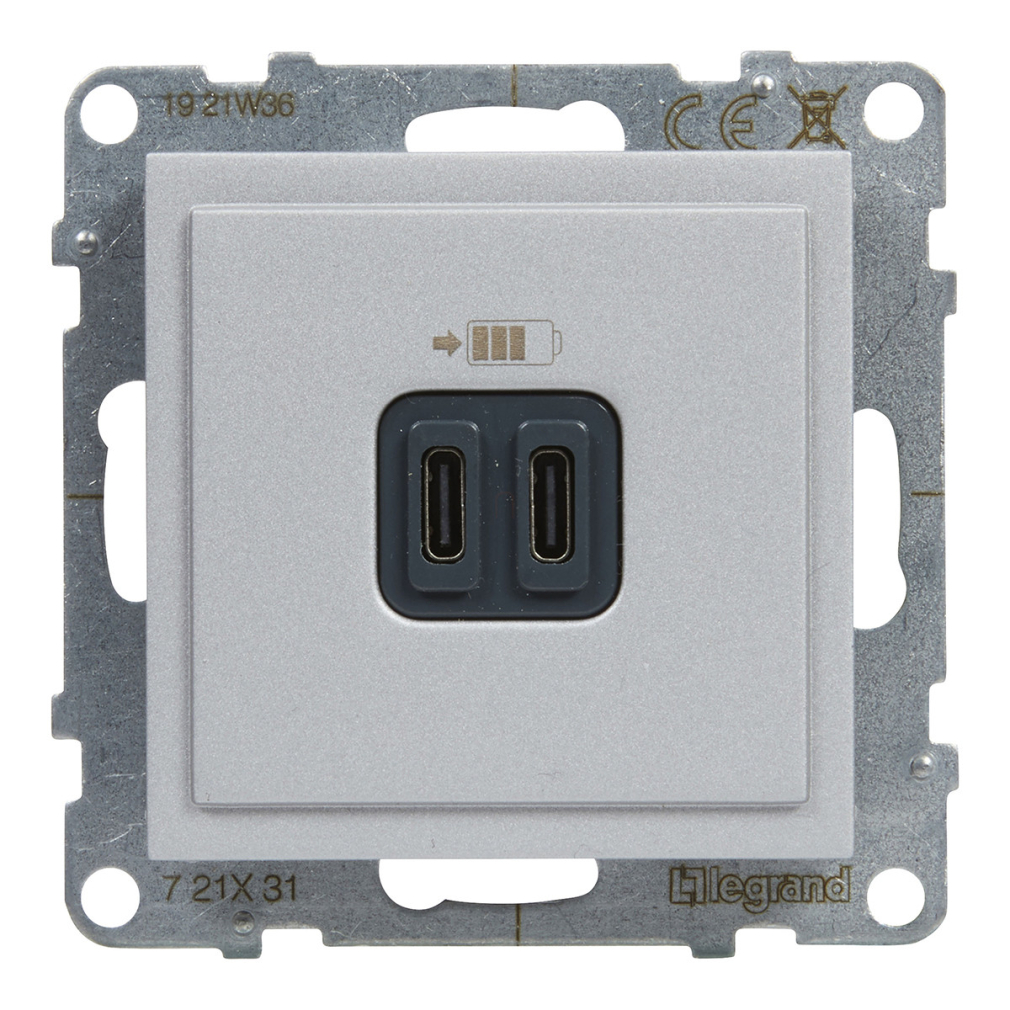 Legrand Suno 2xUSB-C töltőaljzat, 3 A-15 W, alumínium - 721331