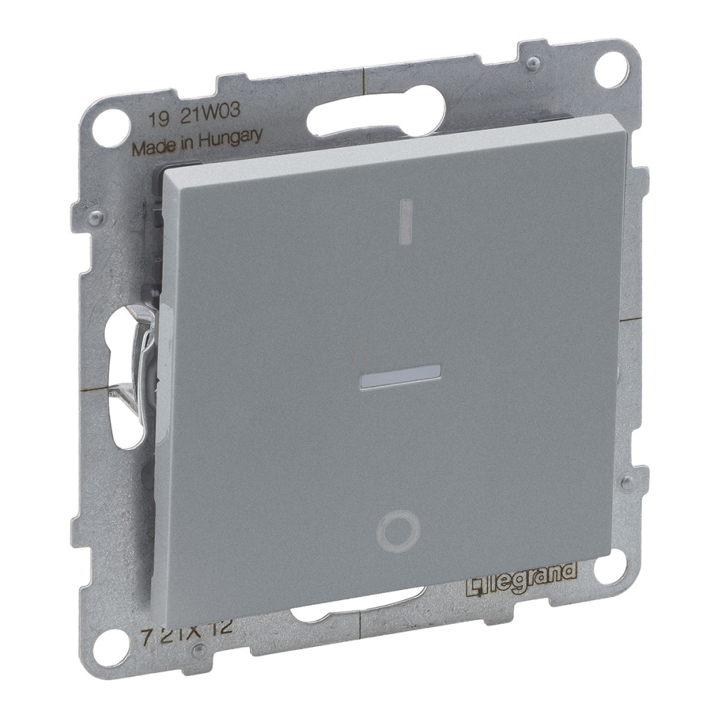 Legrand Suno kétpólusú kapcsoló ellenőrzőfénnyel 10AX, alumínium - 721312