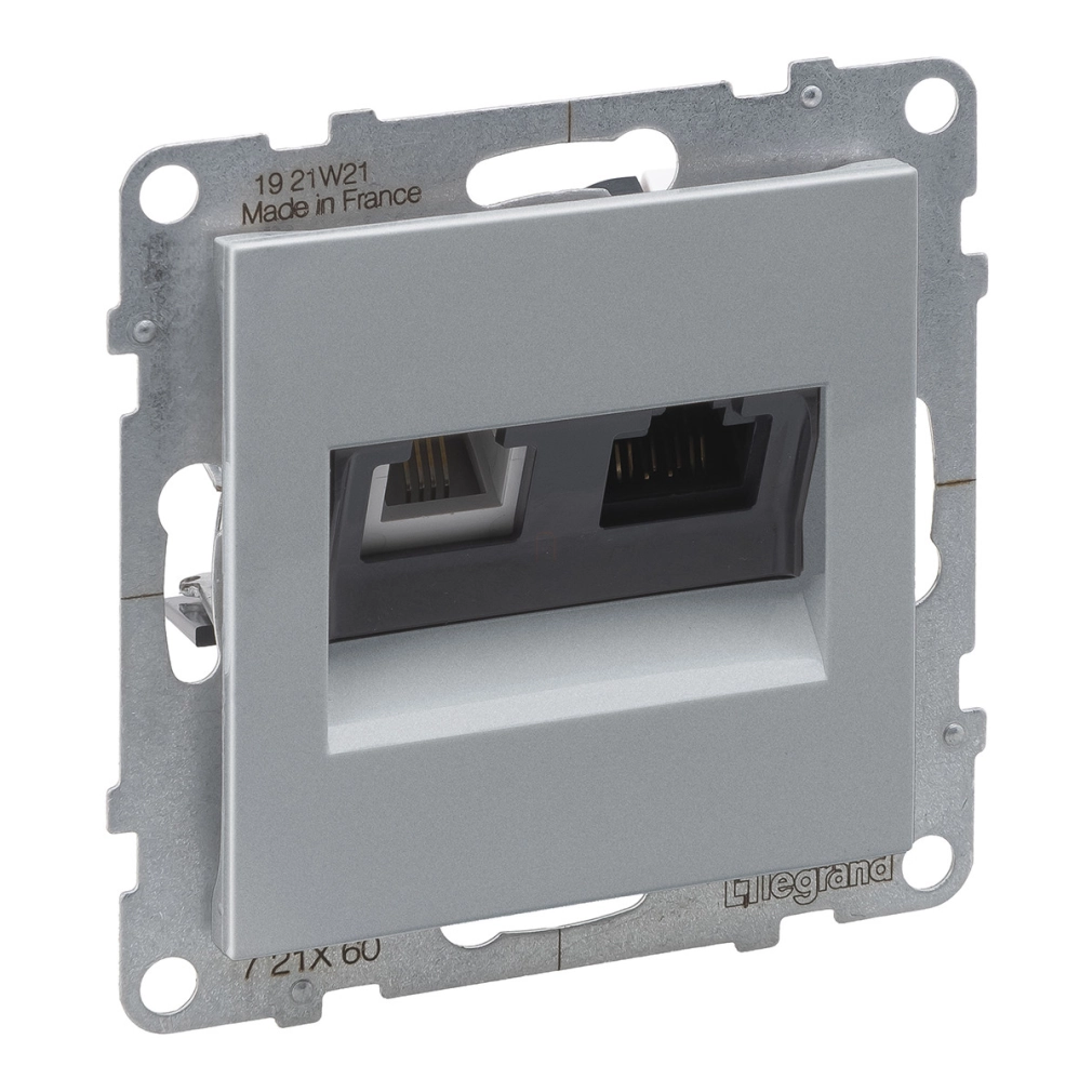 Suno alumínium RJ 11 telefon + RJ 45 Cat.6 UTP csatlakozóaljzat, keret nélkül 721360 Legrand