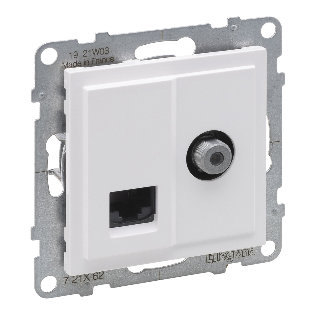Legrand Suno TV "F" típus + RJ45 Cat.6 UTP aljzat fehér - 721162