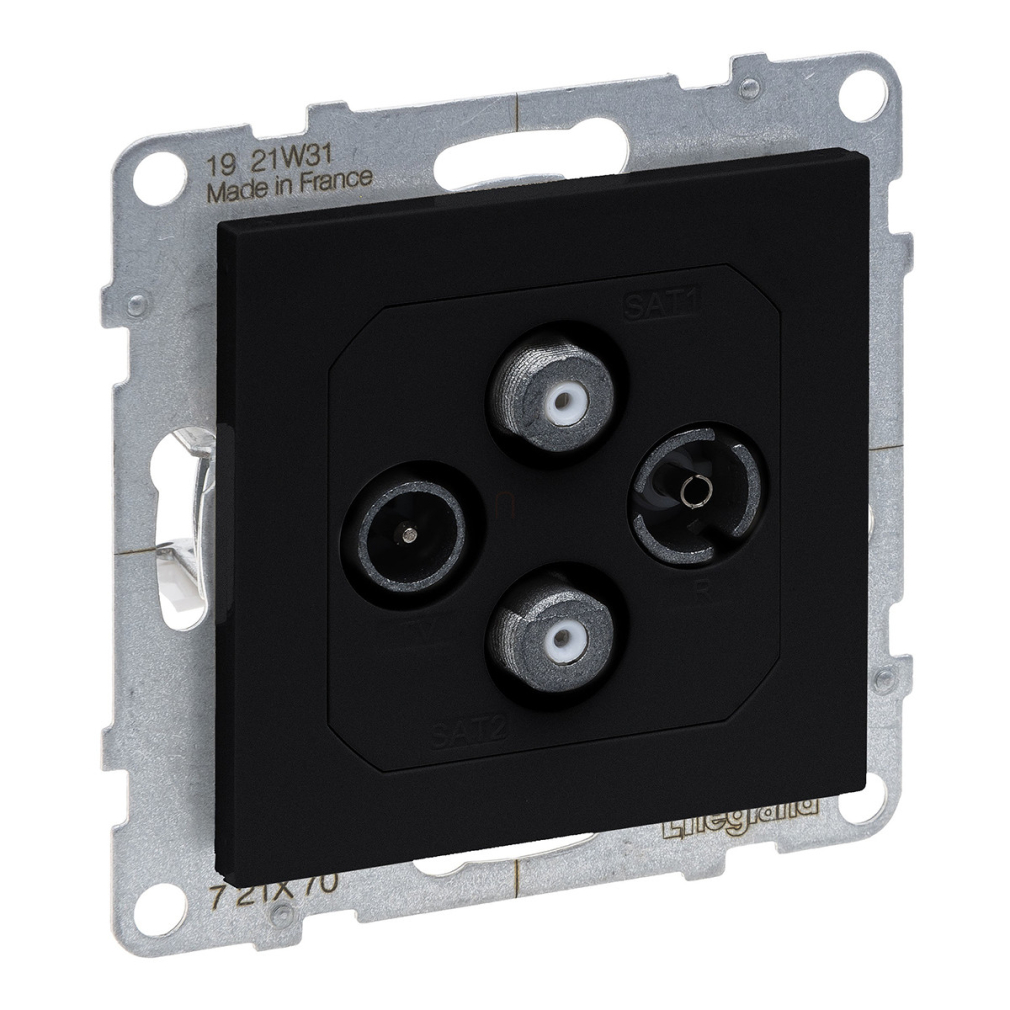 Suno fekete TV-R-SAT-SAT csatlakozóaljzat, végzáró keret nélkül 721470 Legrand
