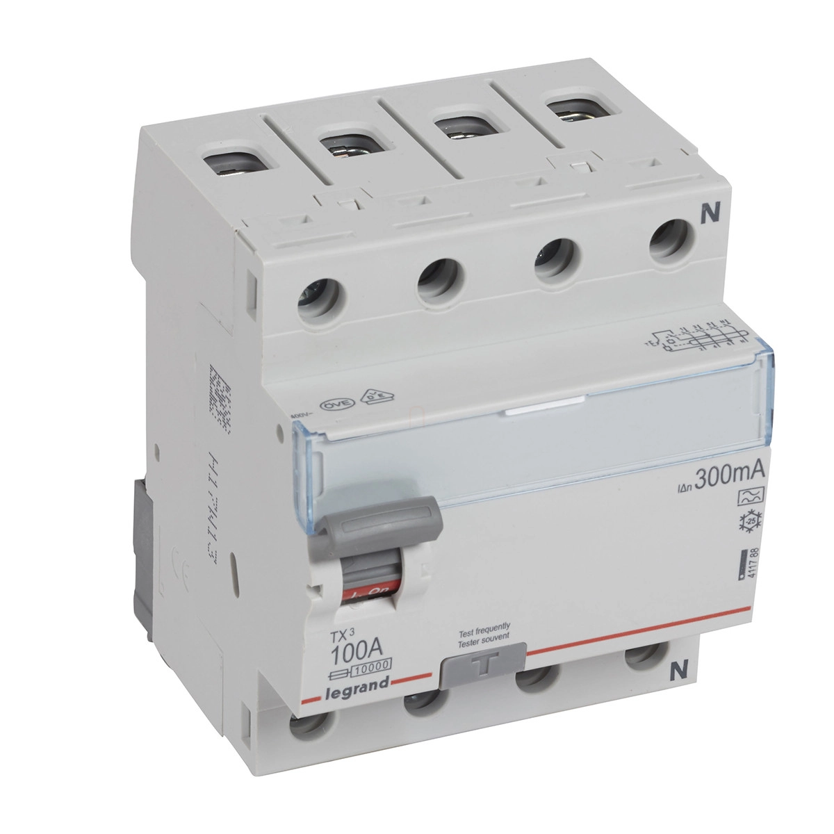 Leg. 411788 TX3 áram-védőkapcsoló 4P D 100A 300MA A