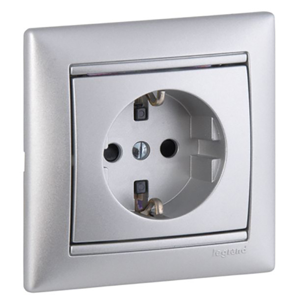 Legrand Valena 2P+F csatlakozóaljzat biztonsági zsaluval, alumínium - 770121